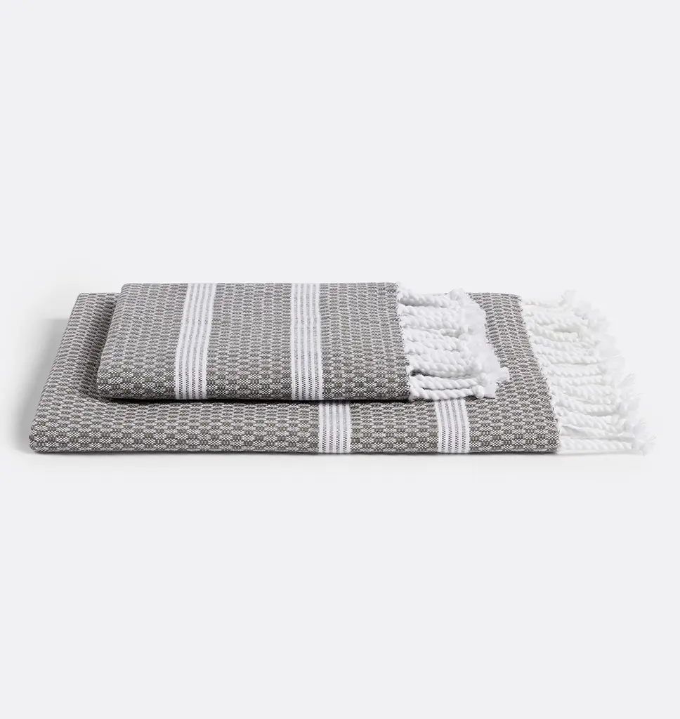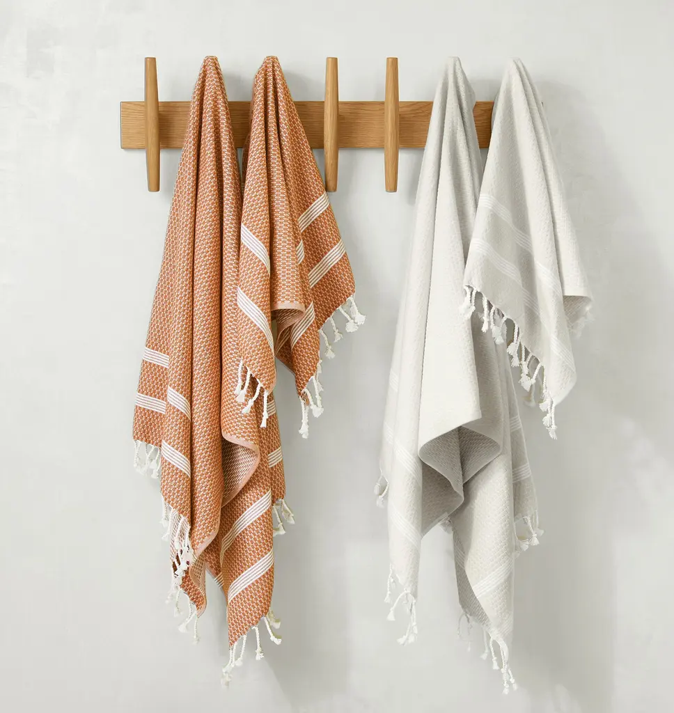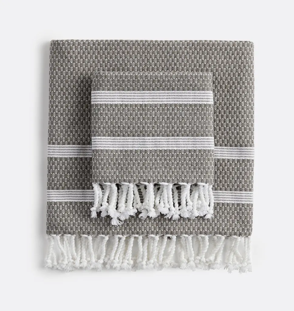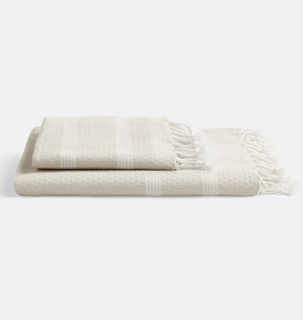 Made from 100% organic Turkish terry cotton, our Pebbled Organic Turkish Towels feature a plush, absorbent weave for a comfortable and luxurious feel. The combination of elegant neutral colors, tasteful stripe design, and rope tassel detail add a beautiful, eye-catching texture to elevate any bathroom or powder room. Details You'll Appreciate Available in three neutral colorways Natural rope tassel detail STANDARD 100 by OEKO-TEX® Certified: tested against a list of 400+ harmful substances to keep you and your family safe. 14.HUS.42449 HOHENSTEIN HTTI Global Organic Textile Standard (GOTS) Certified: Organic cotton is grown without harmful chemicals or pesticides, contributing to cleaner soil and waterways. Product Specifications 100% organic cotton Made in Turkey
