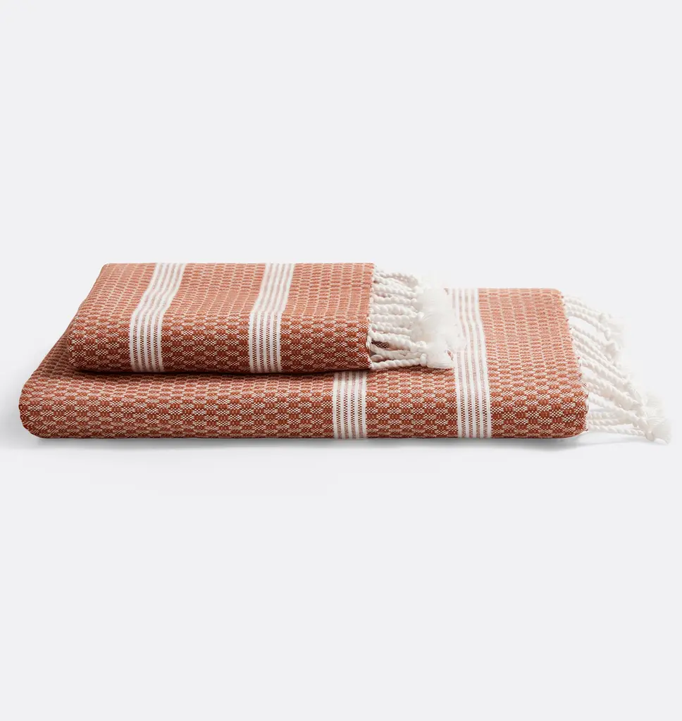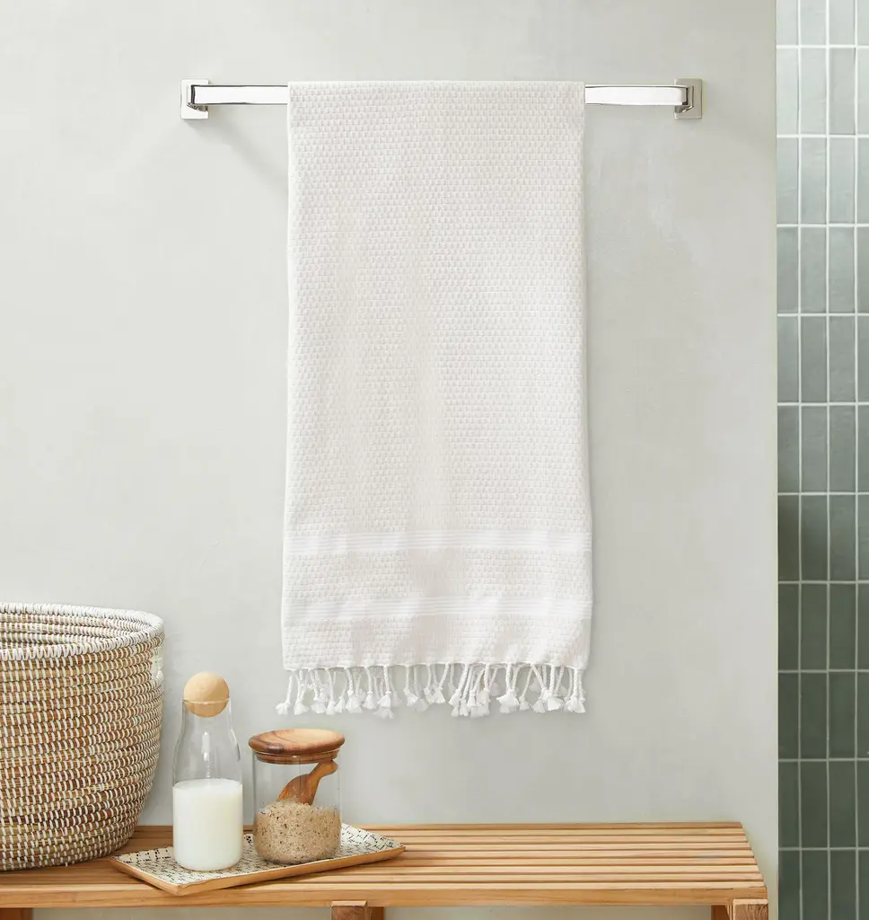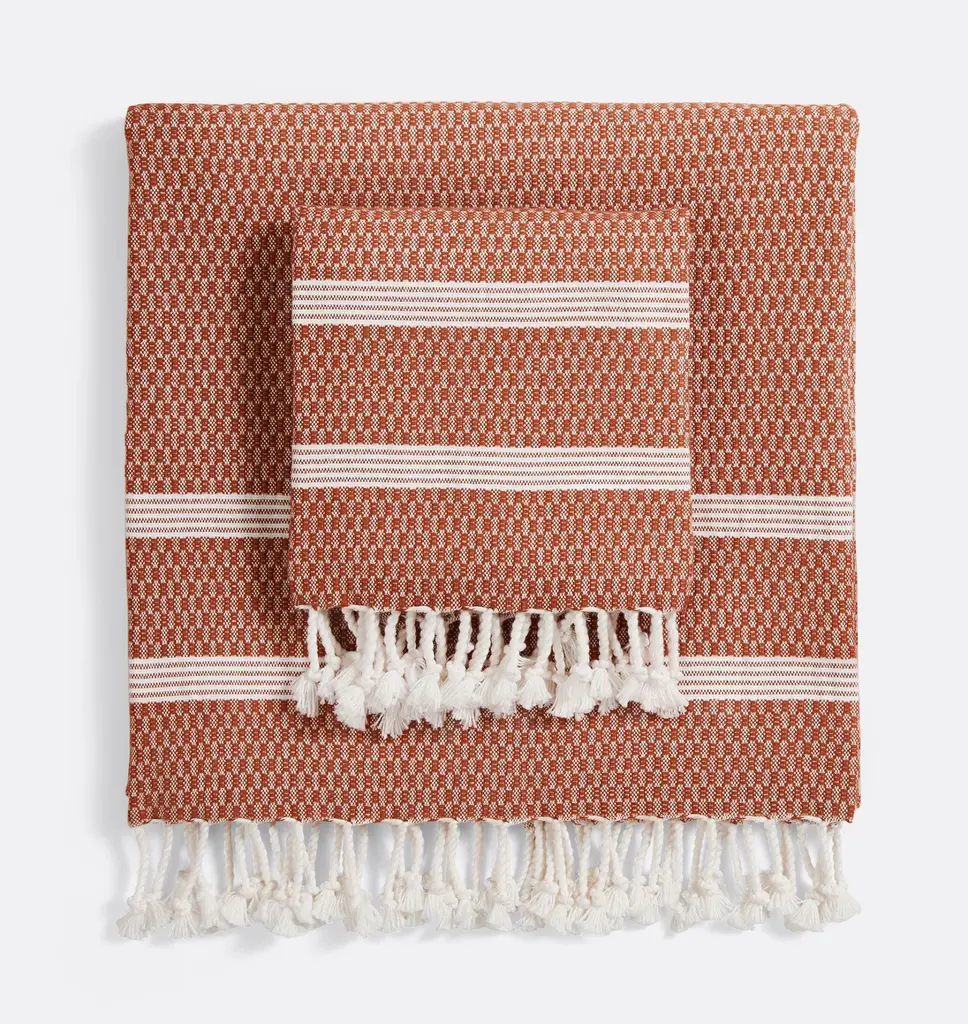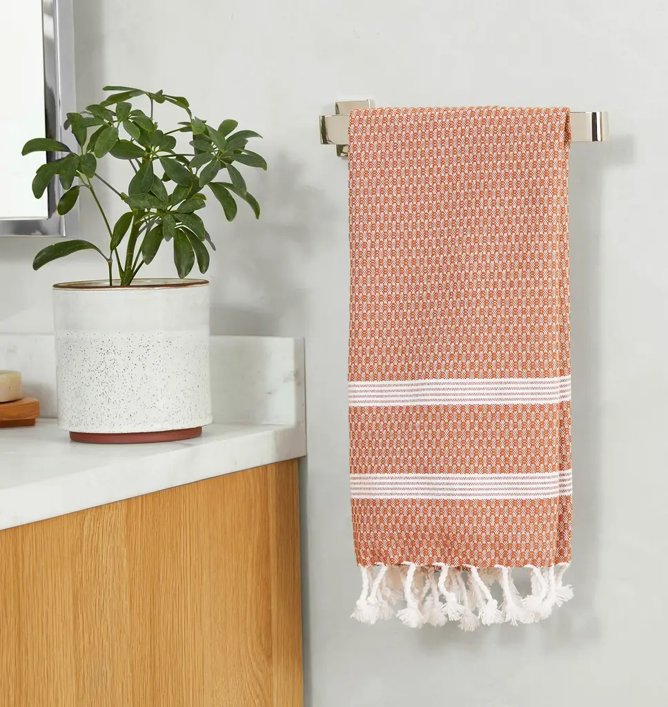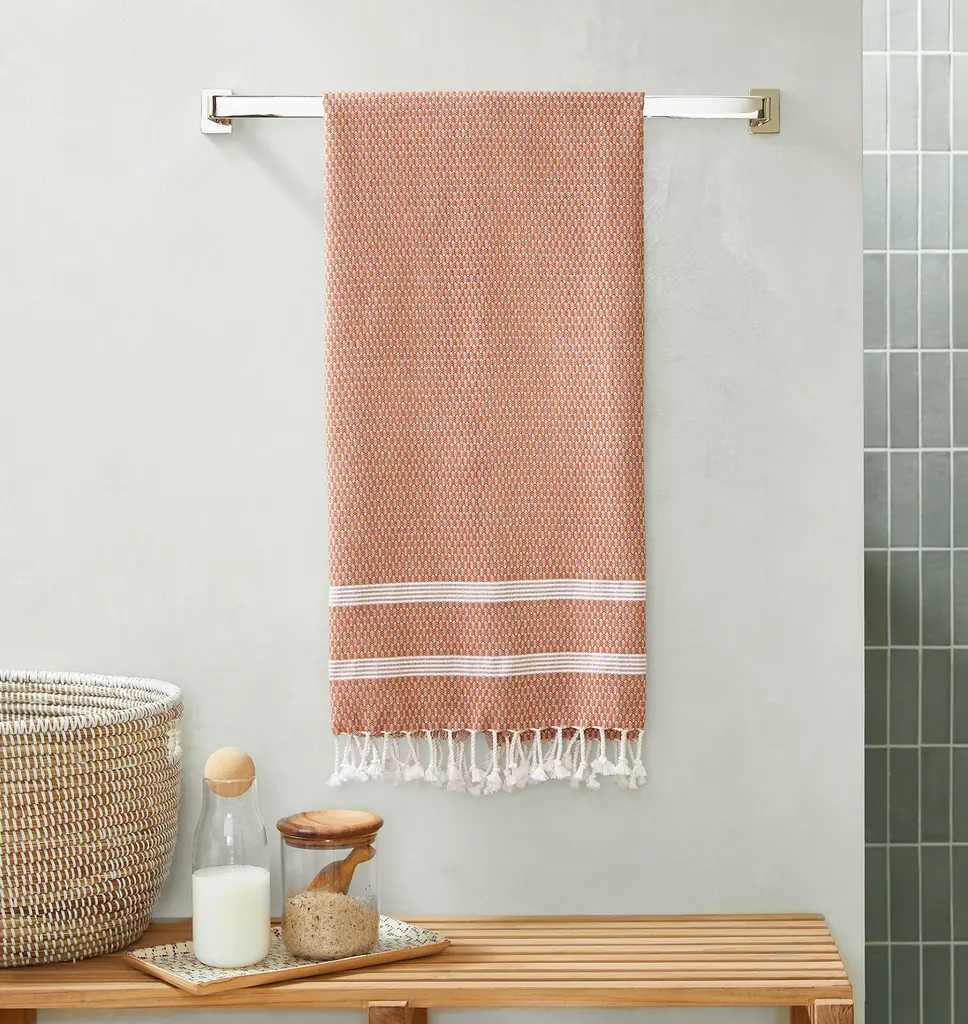 Made from 100% organic Turkish terry cotton, our Pebbled Organic Turkish Towels feature a plush, absorbent weave for a comfortable and luxurious feel. The combination of elegant neutral colors, tasteful stripe design, and rope tassel detail add a beautiful, eye-catching texture to elevate any bathroom or powder room. Details You'll Appreciate Available in three neutral colorways Natural rope tassel detail STANDARD 100 by OEKO-TEX® Certified: tested against a list of 400+ harmful substances to keep you and your family safe. 14.HUS.42449 HOHENSTEIN HTTI Global Organic Textile Standard (GOTS) Certified: Organic cotton is grown without harmful chemicals or pesticides, contributing to cleaner soil and waterways. Product Specifications 100% organic cotton Made in Turkey