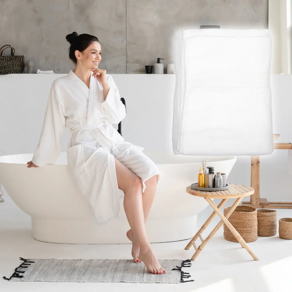 Features:Our towels are made of cotton, soft fabric, delicate to the touch, not easy to lose lint, strong water absorption, can be used with confidence.With a simple and classic pattern design, so that it is no longer monotonous.Multi-scene use, not only limited to the bathroom kitchen, but also can be used with the beach, pool. It is a good helper in life and on the go!Please Note:Machine washable towels. We recommend that you wash them in cold water before the first use.Specification:Product Name: Cotton Bath TowelMaterial: CottonQuantity: 1 PcsColour: WhiteSize: 70x140cm / 27.56"x55.12"(L*W)Package List: 1 Pcs Cotton Bath Towel