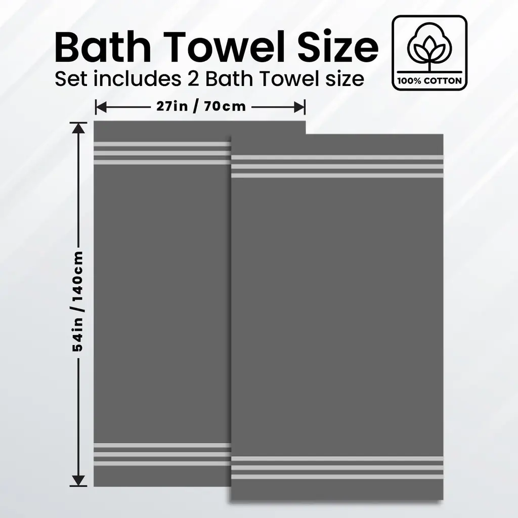 2 Pack Luxury Bath Towels 27x54 - Soft Quick Dry Cotton In Shadow Grey - Grey