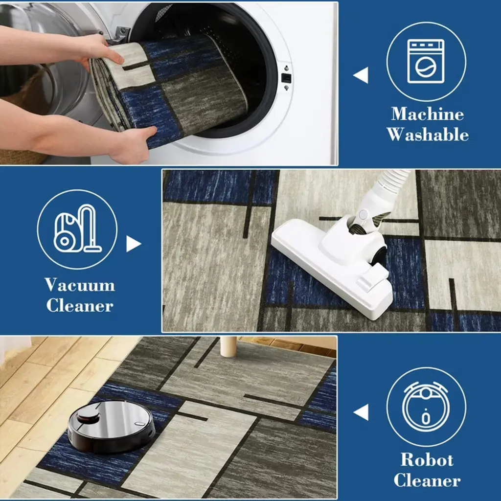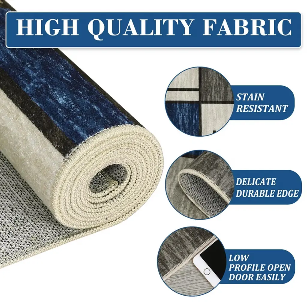 Durable Edges: This rug with durable edges can prolong its service time and be kept simply.Not Hide Dirt: The rug with low pair height provides a clean and safe environment, the hidden dirt in this rug can be found and cleaned simply.Exquisite Design: With unique block pattern, this modern-style carpet relaxes human and brings a sense of beauty to one's enjoyment during use.Kids Pets Friendly: Features low pile height, this rug makes hairs and pet dander easy to spot and clean, prevents children and pets from accidental ingestion, children and pets can play freely on itUltra Soft Surface: This rug crafted from velvet towel, it offers relaxation whether working, reading or resting, maintains a soft and comfortable feel underfoot.
