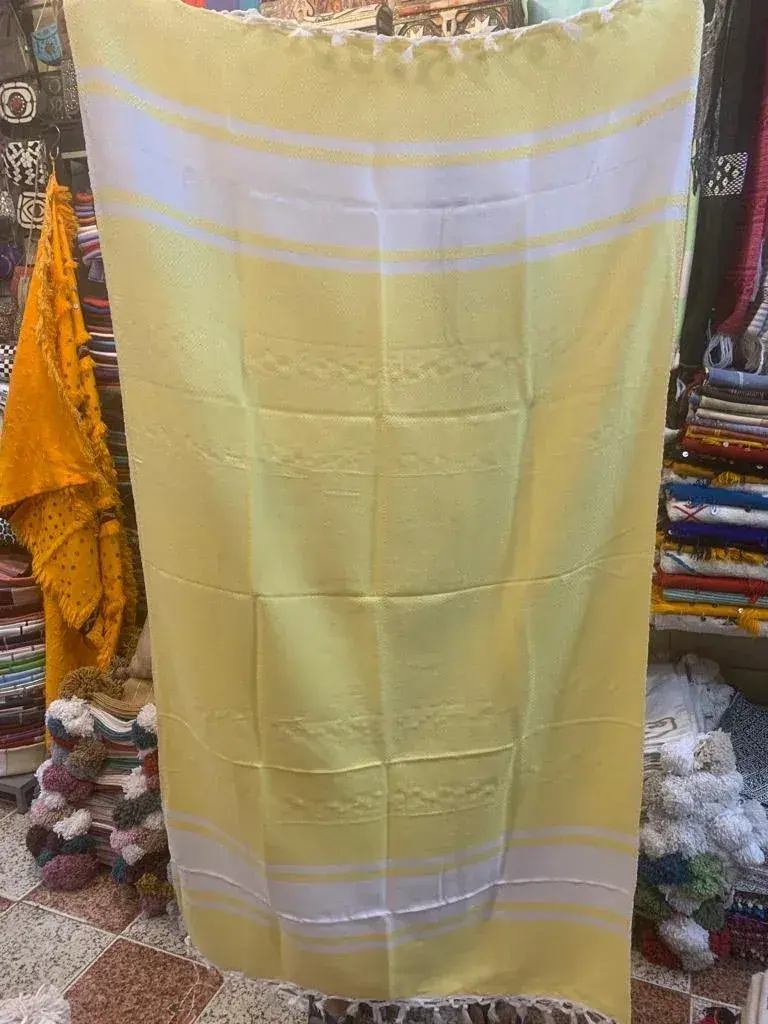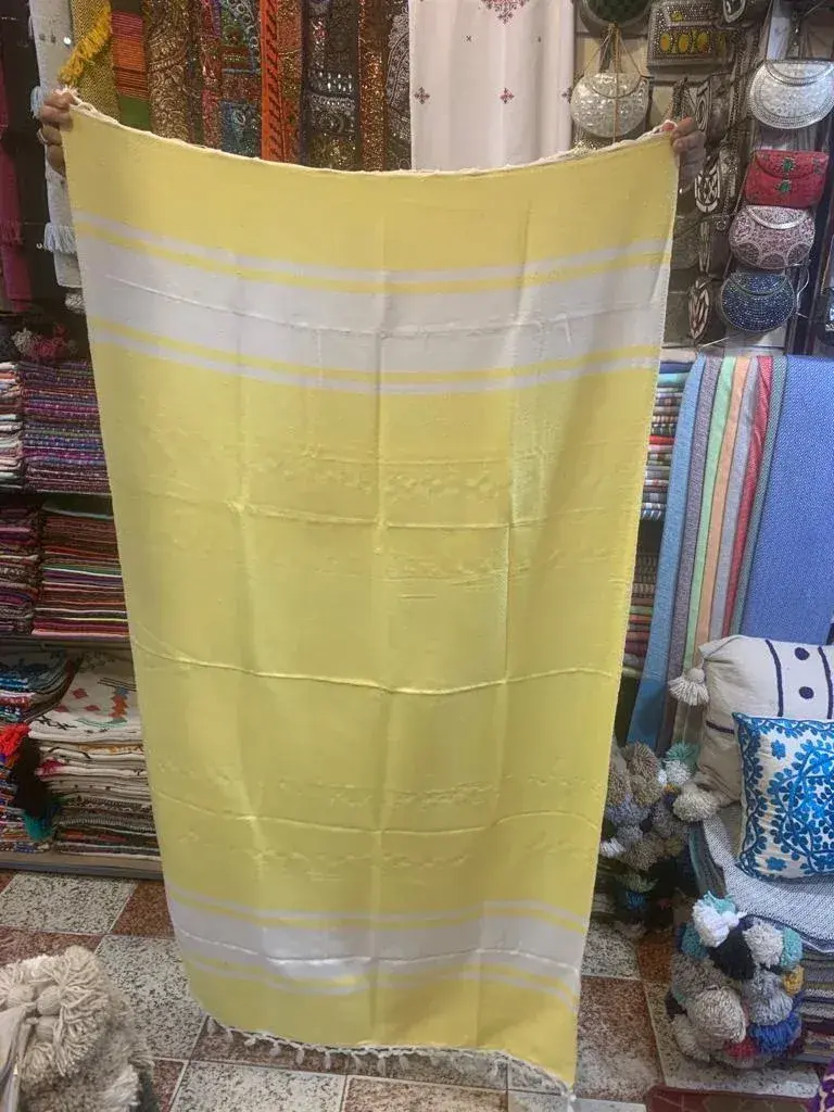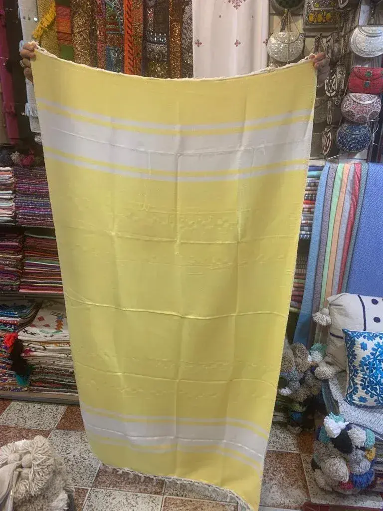 Moroccan bath towel Handmade towel in Morocco from natural yellow cotton A large towel that allows the user to wrap it all over her body A beautiful and moist cotton towel with a soft texture on the body, but it dries all the water droplets that are above the body A beautiful towel that deserves to be found inside your bathroom, I recommend it to you ... Measurements The length is 180 centimeters, about 71 inches The width is 90 centimeters, about 36 inches Fast and free shipping FOR YOU