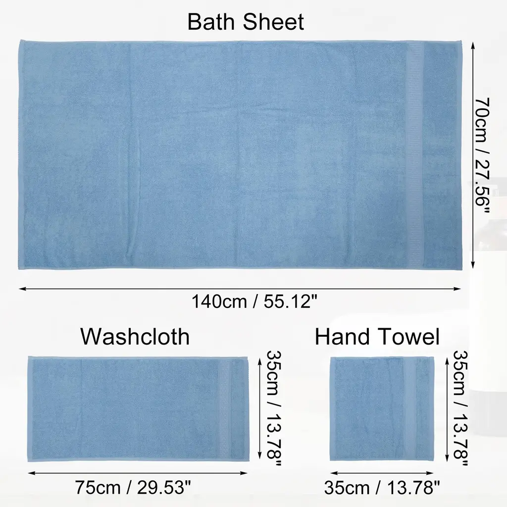 Features:Our towels are made of cotton, soft fabric, delicate to the touch, not easy to lose lint, strong water absorption, can be used with confidence.With a simple and classic pattern design, so that it is no longer monotonous.Multi-scene use, not only limited to the bathroom kitchen, but also can be used with the beach, pool. It is a good helper in life and on the go!Please Note:Machine washable towels. We recommend that you wash them in cold water before the first use.Specification:Product Name: Cotton Bath TowelMaterial: CottonQuantity: 3 PcsColour: Blue GraySize A: 70x140cm / 27.56"x55.12"(L*W)Size B: 35x75cm / 13.78"x29.53"(L*W)Size C: 35x35cm / 13.78"x13.78"(L*W)Package List: 3 Pcs Cotton Bath Towel