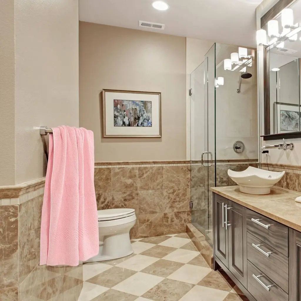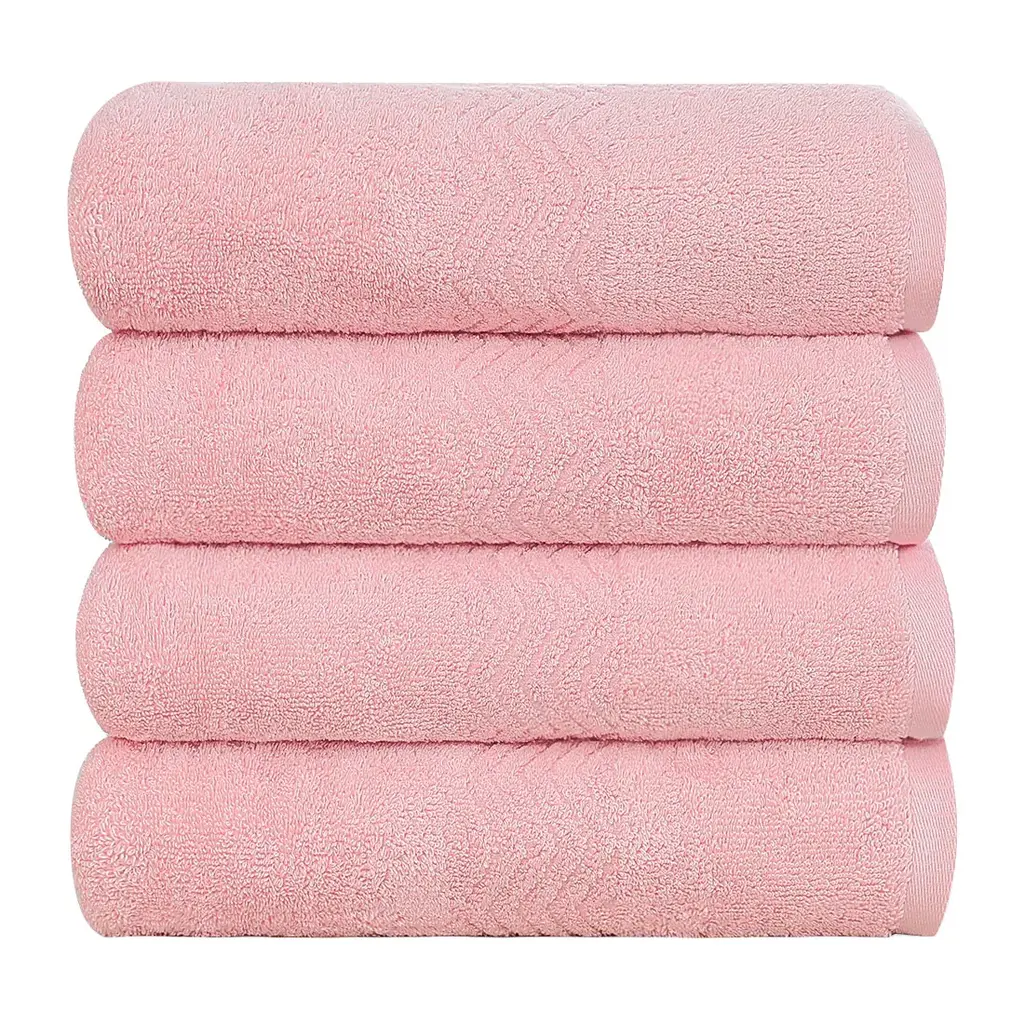 4 Pieces Cotton Bath Towels 27"x54" For Home Spa Hotel Soft Absorbent - 27 X 54in - Pink - 27 X 54in
