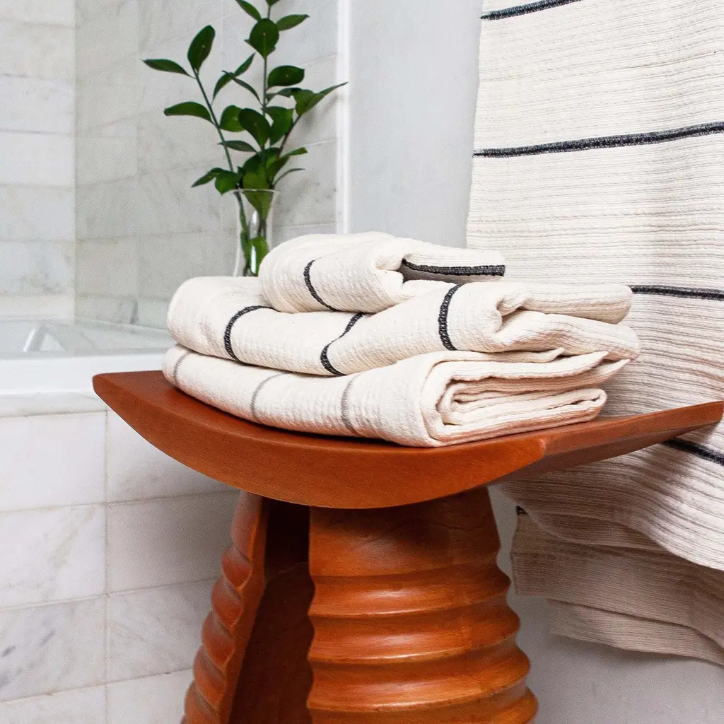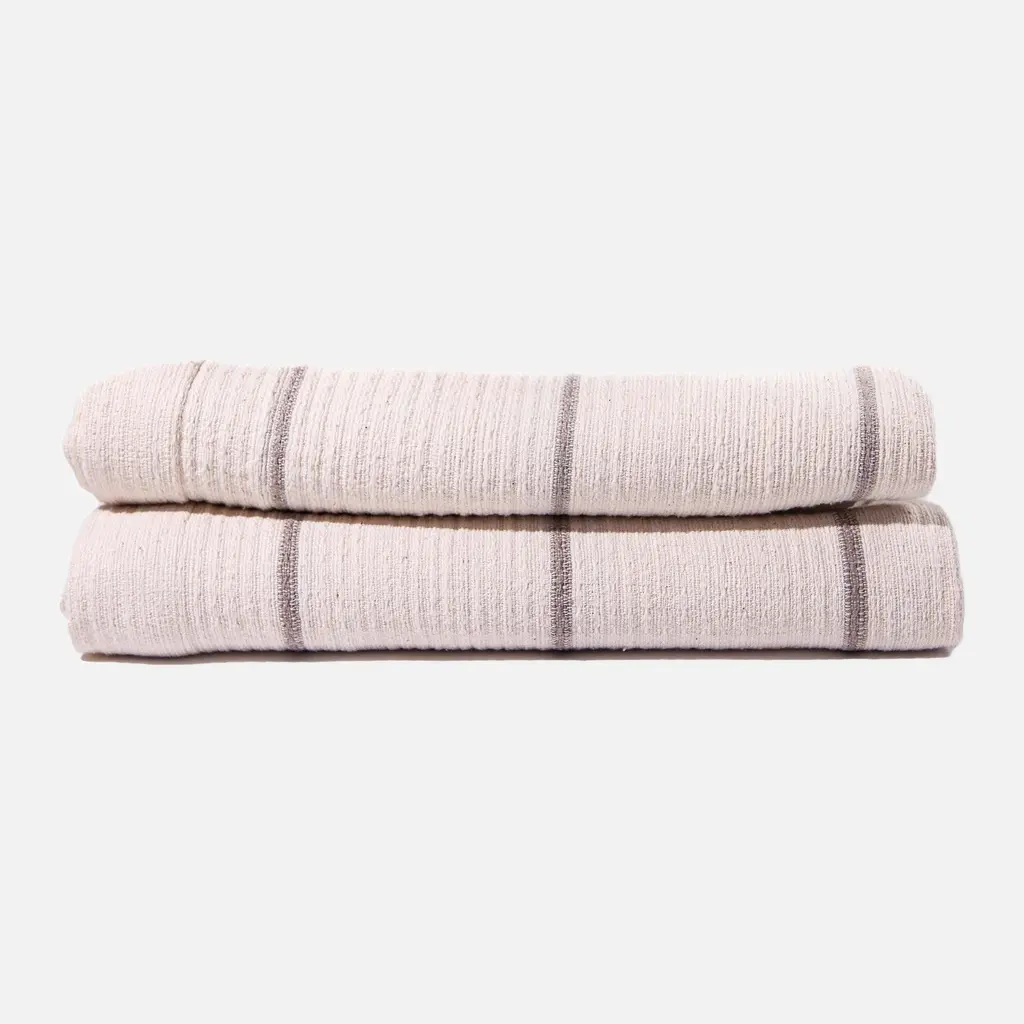 The Addis Gray Waffle Weave Bath Towels Set 2 is handmade in Ethiopia from cotton that is skillfully hand-spun and loomed by local artisans. The design is made using a four-harness traditional hand loom, giving this waffle towel its three-dimensional look. The design house is a member of the World Fair Trade Organization, which ensures that each worker receives sustainable income. This waffle weave towel is durable and long lasting for multiple uses.