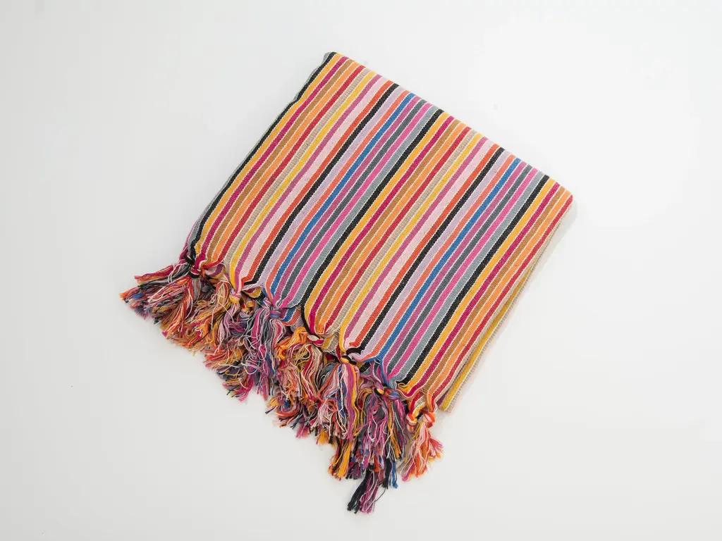 Discover the superb craftsmanship of our meticulously crafted cotton-linen blend bath towel, created in Hatay, Turkey. Our exceptional peshtemal showcases dynamic stripes in an array of bold colors including red, yellow, black, pink, purple, and orange. The combination of cotton and linen provides unmatched plushness and moisture absorption, ideal for both bathing and beach activities.