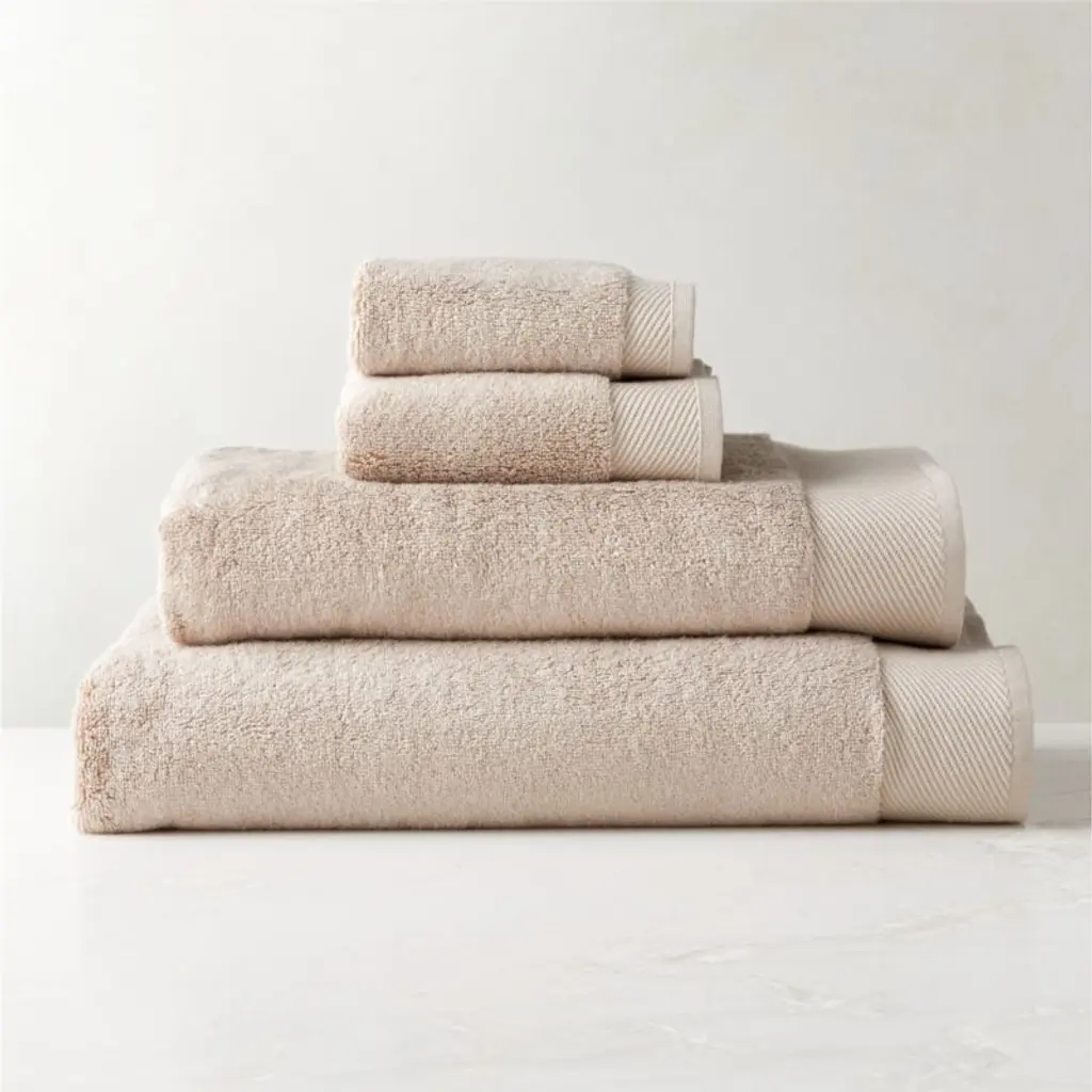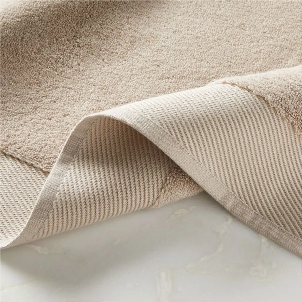 Impressively soft, extremely absorbent bath towel is as durable as it is beautiful. Spun from a blend of organic cotton and certified TENCEL modal, bath towel evokes serenity in light taupe. CB2 exclusive.