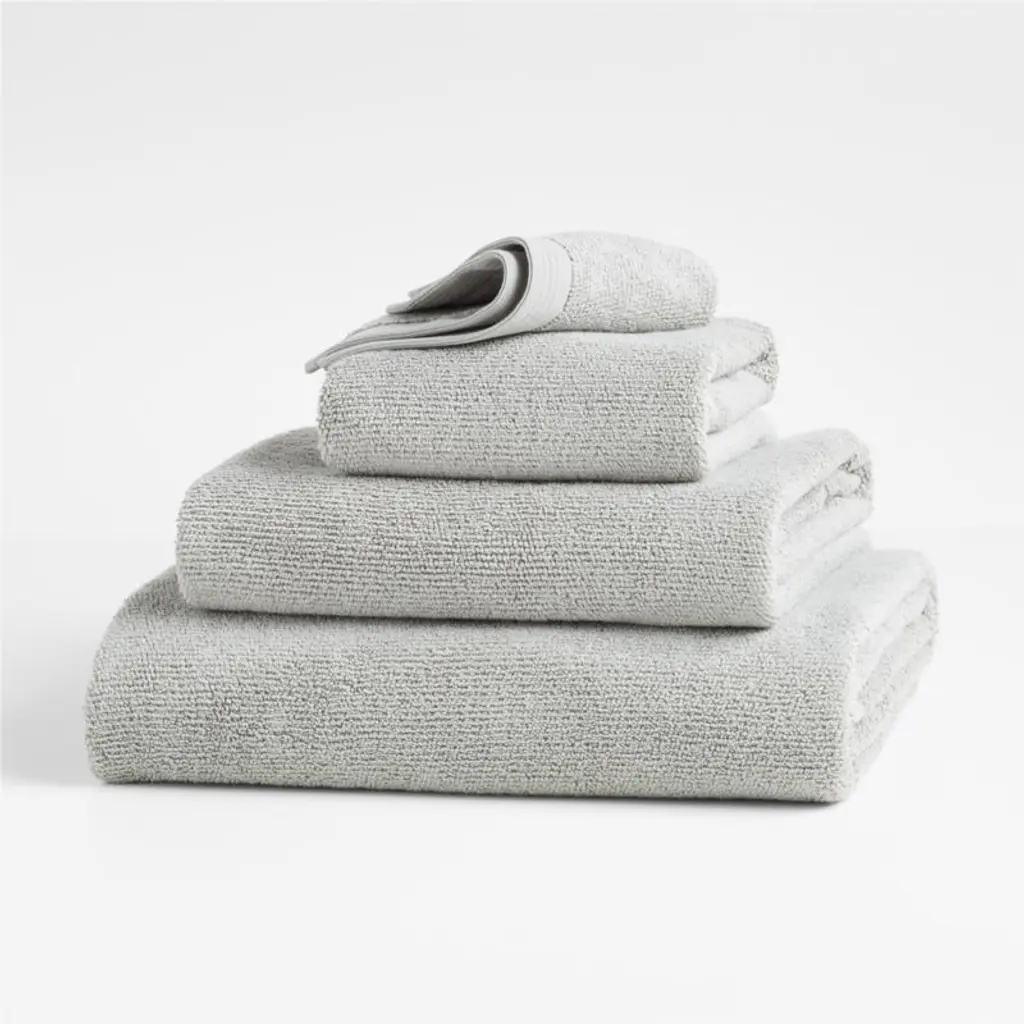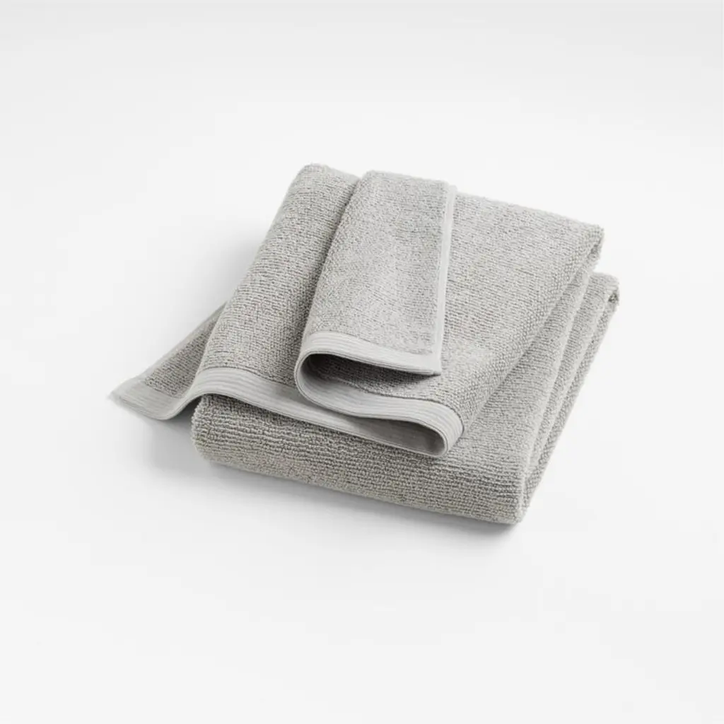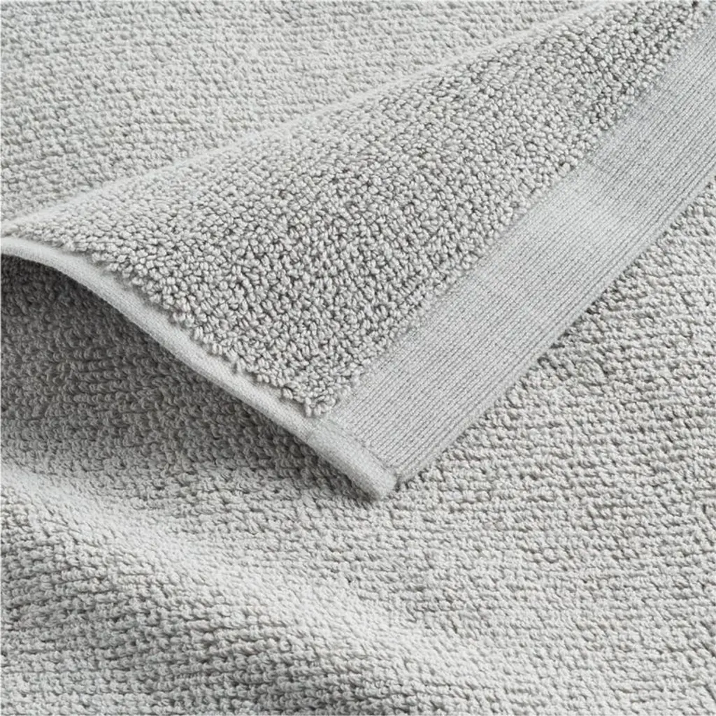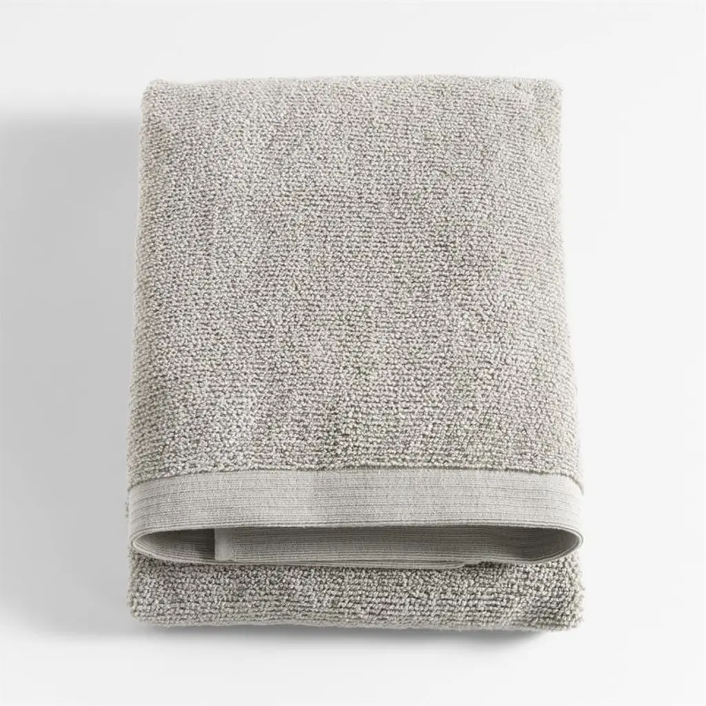 Pale grey organic cotton yarn interwoven with specially treated threads creates a super-soft bath towel with antimicrobial powers. Lasting for the life of the textile, the SILVERbac treatment inhibits the growth of most bacterial pathogens and minimizes odors. Long-staple Turkish cotton provides durability, strength and softness. A Crate & Barrel exclusive, the antimicrobial organic cotton bath towel coordinates with our other ash grey towels.
