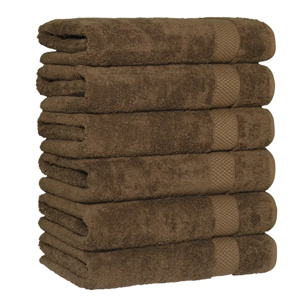 Authentic Hotel And Spa 100 Percent Aeagean Long Staple Turkish Cotton Starlight Terry Bath Towels (Set Of 6) - Earth Brown