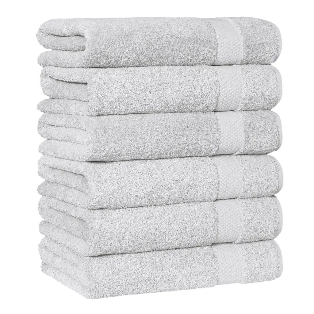 Authentic Hotel And Spa 100 Percent Aeagean Long Staple Turkish Cotton Starlight Terry Bath Towels (Set Of 6) - Glacier Gray