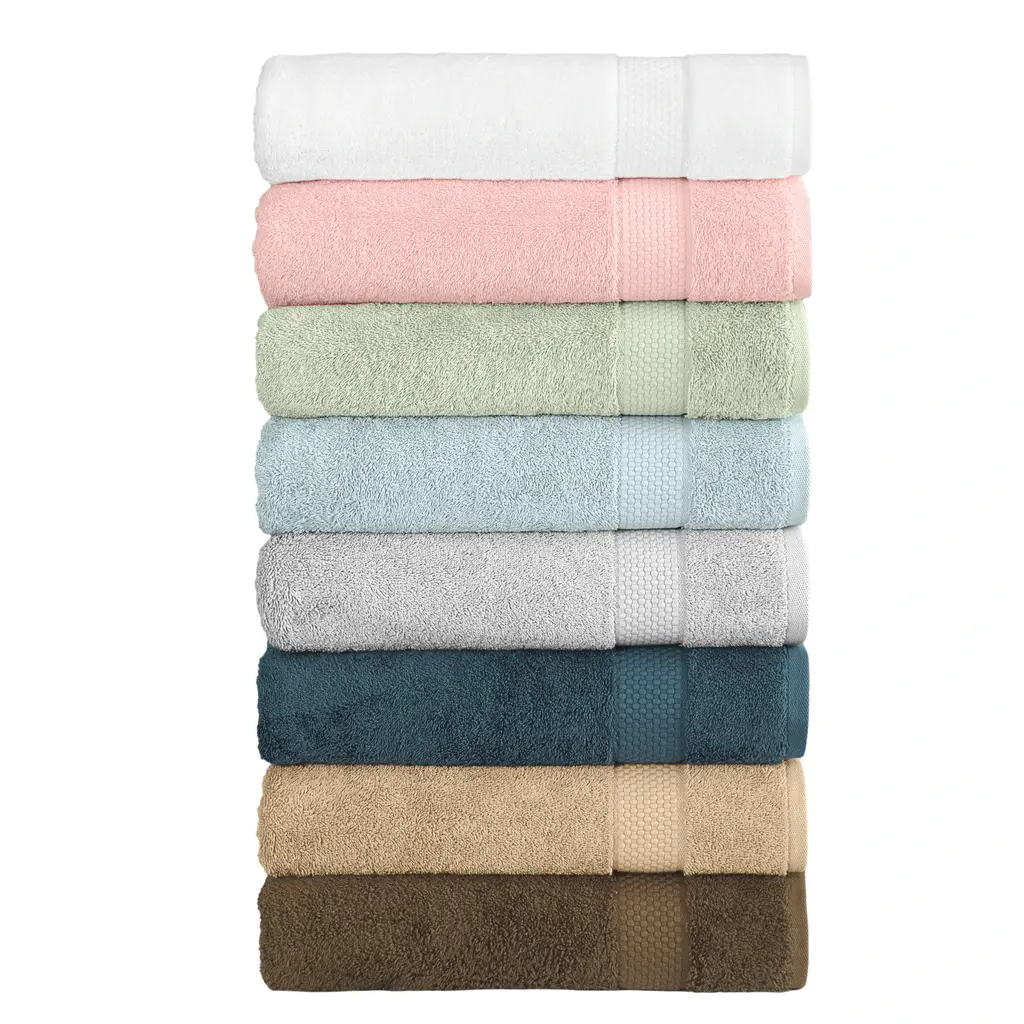 Pamper your family and guests with the STARLIGHT finest 100 percent Aegean Long Staple Turkish Cotton Towel Collection. This high quality fiber provides fast drying, high absorbency, intensive color reflection, superior durability, and a softness of touch. With securely stitched edges and decorative basket weave dobby border stripe, these luxurious towels are an elegant addition to your bath. • 100% AEGEAN Long Staple Turkish Cotton • Decorative basket weave dobby border stripe • Extra thick weave • Colors: White, Glacier Grey, Ice Blue, Sea Green, Sesame, Earth Brown, Deep Blue, Veil Pink • Set includes 6 bath towels (27" x 54" / 580 GSM) • Machine wash warm water with like colors, Tumble dry low, Remove immediately, Non-chlorine bleach if needed • Made in Turkey