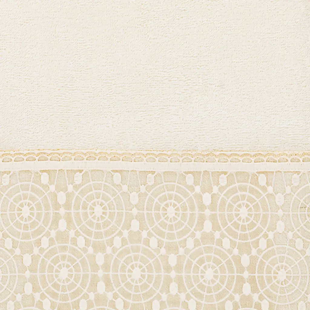 Authentic Hotel And Spa 100% Turkish Cotton Arian Cream Lace Embellished Bath Towel - Cream