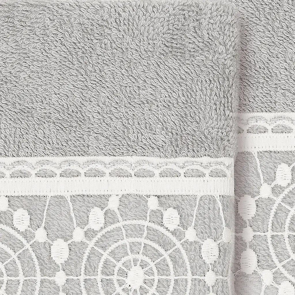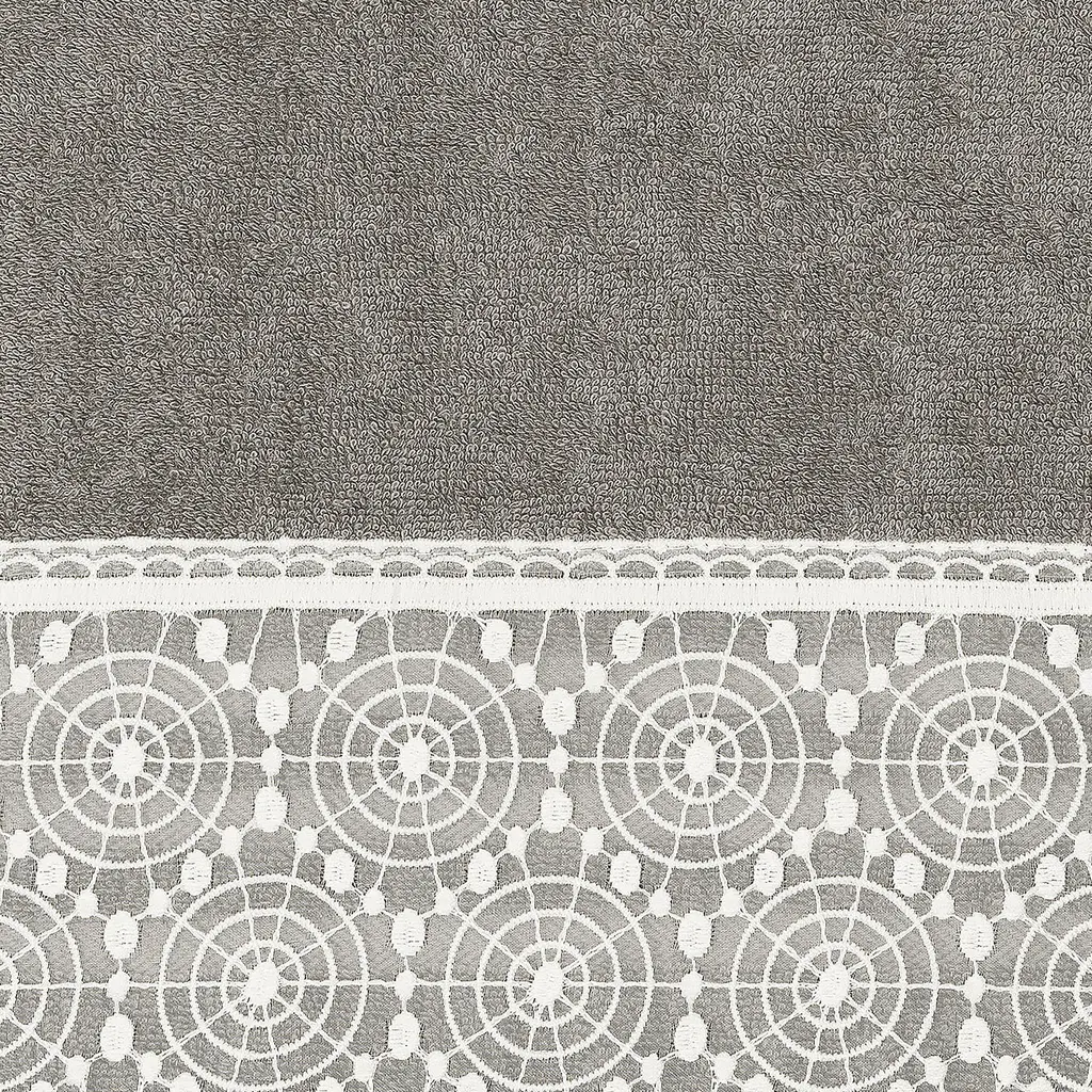 Authentic Hotel And Spa 100% Turkish Cotton Arian Cream Lace Embellished Bath Towel - Dark Gray