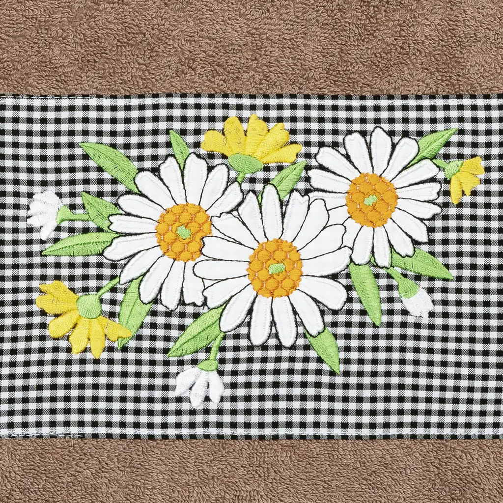 The Daisy Embellished Towel Collection features a fresh bouquet embroidered on a textured gingham check cloth border. These soft and luxurious towels are made of 100% premium Turkish Cotton and offer lasting absorbency and superior durability.100% Premium Turkish Cotton Superbly absorbent and quick drying Available in a range of lovely towel colors Machine wash cold, No bleach, line dry or dry clean Includes 1 bath towel (27" x 54") Made in Turkey • Proudly Embellished in USA