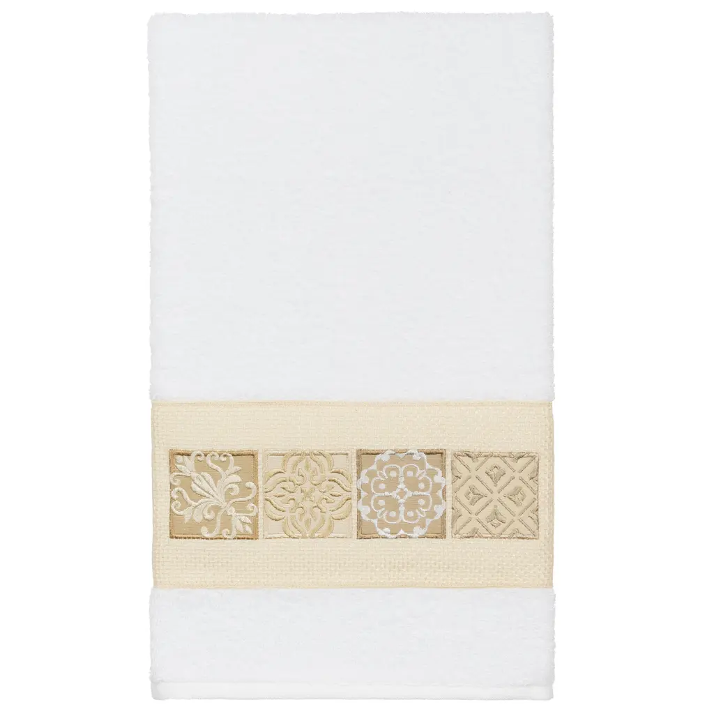 Authentic Hotel And Spa 100% Turkish Cotton Vivian Embellished Bath Towel - White
