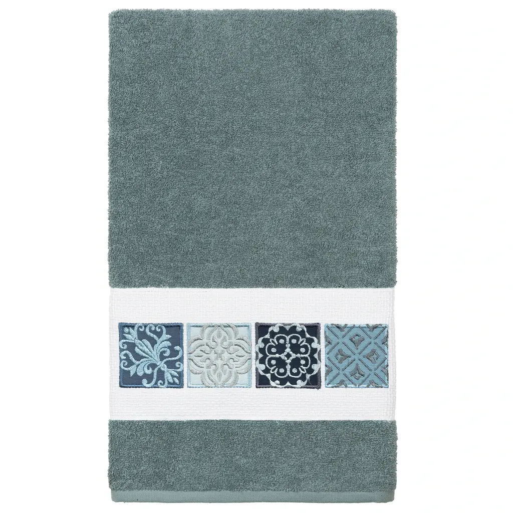 The Vivian Embellished Towel Collection features a classic tile pattern embroidered on a woven textured border. These soft and luxurious towels are made of 100% premium Turkish Cotton and offer lasting absorbency and superior durability.100% Premium Turkish Cotton Superbly absorbent and quick drying Available in a range of lovely towel colors Machine wash cold, No bleach, line dry or dry clean Includes 1 bath towel (27" x 54") Made in Turkey