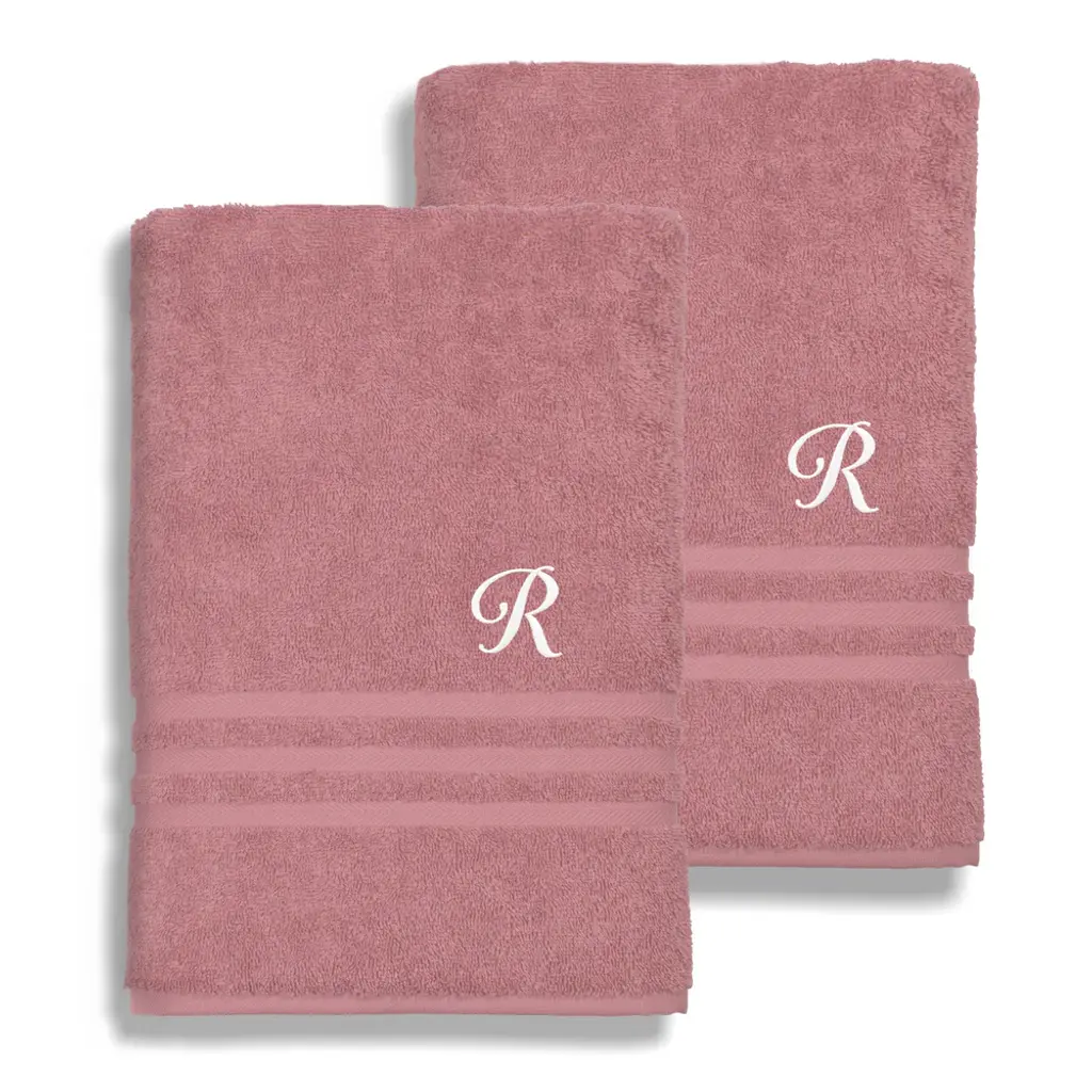 Enjoy a luxurious bath experience with this set of two Authentic Hotel and Spa bath towels, available in pink with a monogrammed initial of your choice. These towels are made from Turkish cotton, making them soft, comfortable, and highly absorbent.Details:Set includes 2 bath towelsSoft, thick and very absorbentLong-lasting towels designed for heavy useBecome softer with each washWill not pill or shedMaterials: 100 percent Turkish cottonCare instructions: Machine washableMade in TurkeyProduct Features: Monogrammed, Eco-FriendlyPattern: Solid Color, EmbroideredCare Instruction: Machine WashTowel: Bath Towels, Towel Sets, DecorativeColor: White, PinkBath Towel: 27 inches wide x 54 inches long