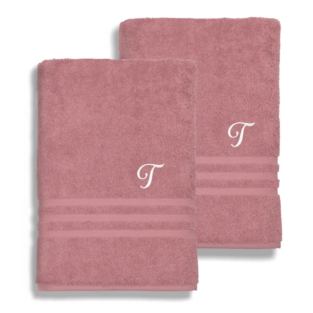 Authentic Hotel And Spa Omni Turkish Cotton Terry Set Of 2 Tea Rose Bath Towels With White Script Monogrammed Initial - J