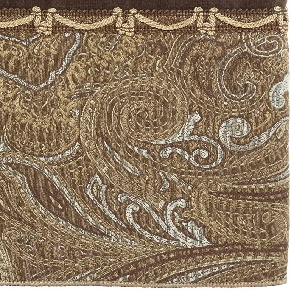 The Avanti Bradford Java Decorative Embellished Bath Towel is bordered with a rich brown, blue and gold jacquard paisley fabric finished with an elegant gold and brown trim. The 27" x 50" velour java brown towel is 100% cotton. Other colors and sizes available.