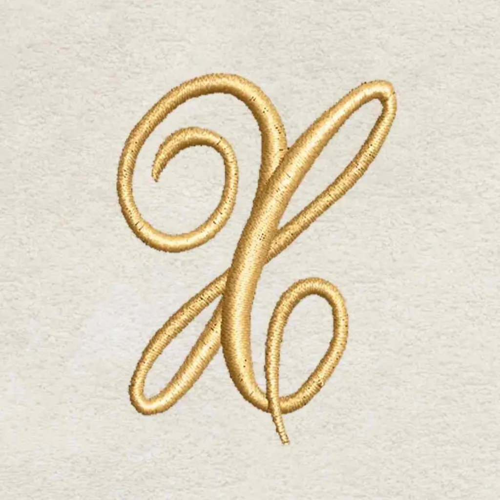 The Premier Ivory with Gold Script Monogram Bath Towel features an embroidered metallic gold script "X" on an ivory ground. The 27" x 52" ringspun cotton terry ivory towel is plush and absorbent and feels as great as it looks. Matching hand and fingertip sizes and other letters also available.