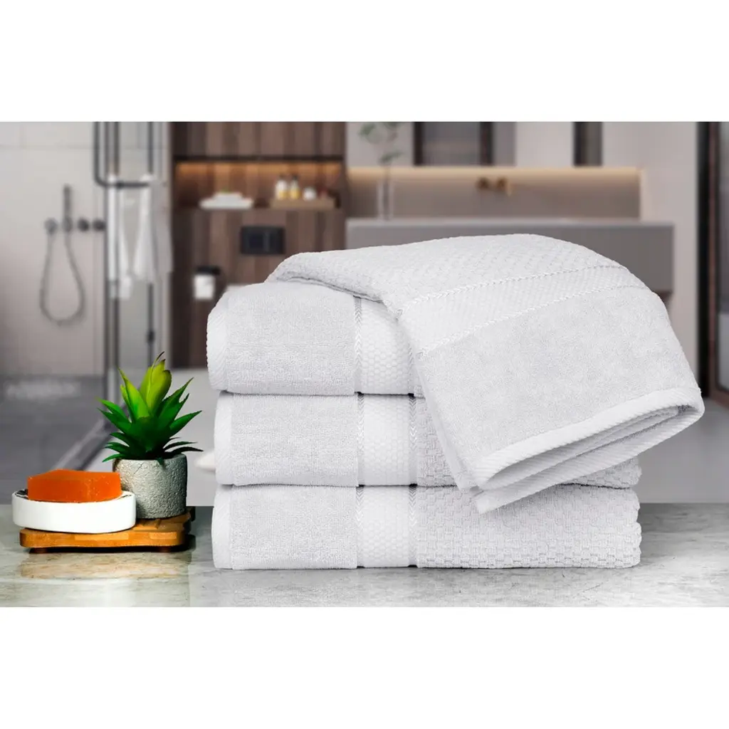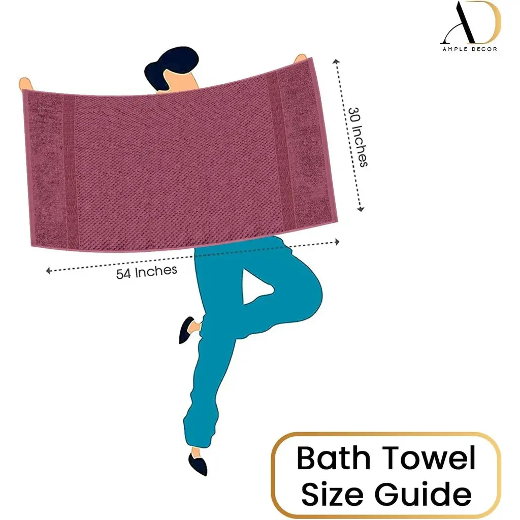 Wrap yourself in buttery softness with our popcorn pattern bath towel!!! Bathing and washing are now more fun than ever thanks to Ample Decor bath towels. Our new Mulaayam collection Popcorn Pattern bath towel is a fun and stylish addition to any bathroom, guestroom, or kitchen. Made from soft and absorbent cotton material, this towel is perfect for drying hands or wiping up spills. The construction of the bath towels improves their surface area on both sides, and absorption, and requires fewer wipes to properly dry your body. Because it is thicker yet still lightweight. The high-quality fabric ensures durability and easy care, making this towel a practical and stylish choice for everyday use. Features: - Brand: - Ample Decor Material: - 100% Cotton GSM: - 550 GSM Pattern - Popcorn Pattern Set Content - Set of 4 Bath Towel Dimension - 30 X 54 Inch Machine Washable DISCLAIMER: Due to variations in screen settings, color profiles, and calibration, colors exhibited on electronic devices like computer displays, smartphones, or tablets may not be accurately represented. As a result, colors may not show exactly as they do on some devices.