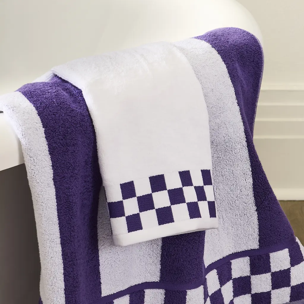 Bath Towel With Plum Check Border