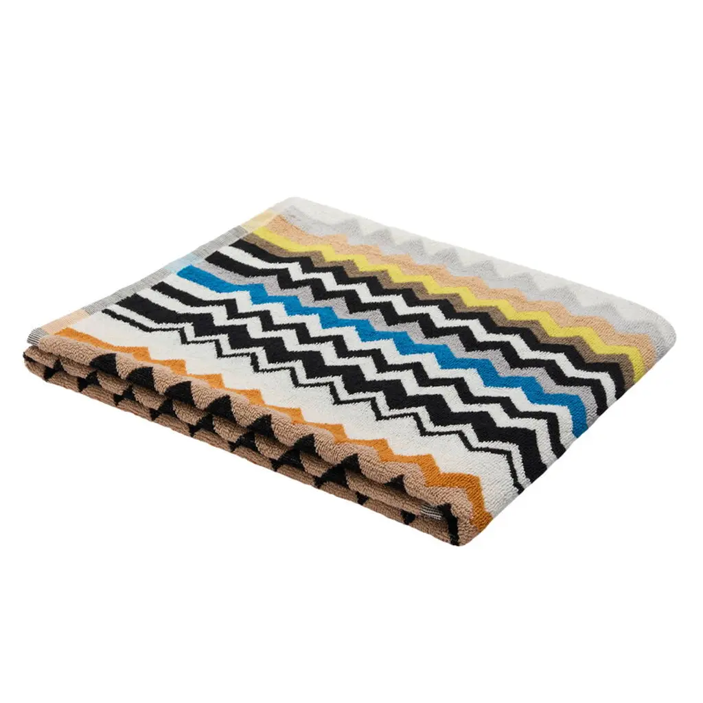 Missoni Home’s Best bath towel brings a fresh look to the bathroom even before it’s in use. Simply hanging on the rack, the towel brightens up everyday routines. When the right moment comes, it wraps your body in the soft embrace of 100% cotton terry. The towel’s multicolored zigzag pattern adds a cheerful touch to your space and pairs beautifully with other Missoni Home towels, whether in matching shaded or contrasting patterns. The Missoni Home collection is known for its bold zigzags, stripes and waves, inspired by the fashion house’s iconic knitwear. Founded in 1953 by Ottavio and Rosita Missoni, the Italian brand gained international fame for its vivid color palettes and striking graphic patterns.