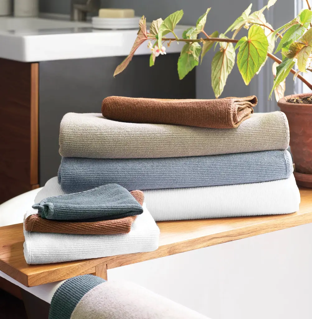 Uniting poetry with purpose, Marie Flanigan uncovers the true beauty of home. These corded cotton bath towels combine modern warmth and texture with rich, neutral, mineral-rich colors. Crepey, soft, long-staple cotton is woven in Portugal. The unique furrows create a lightweight and fast-drying towel that is surprisingly absorbent. Edges are finished with a matching curved cotton banding. Designed for us by Marie Flanigan, the award-winning interior designer, architect, and principal of Marie Flanigan Interiors.
