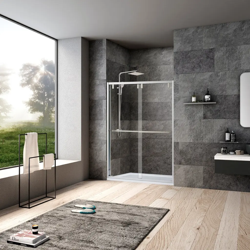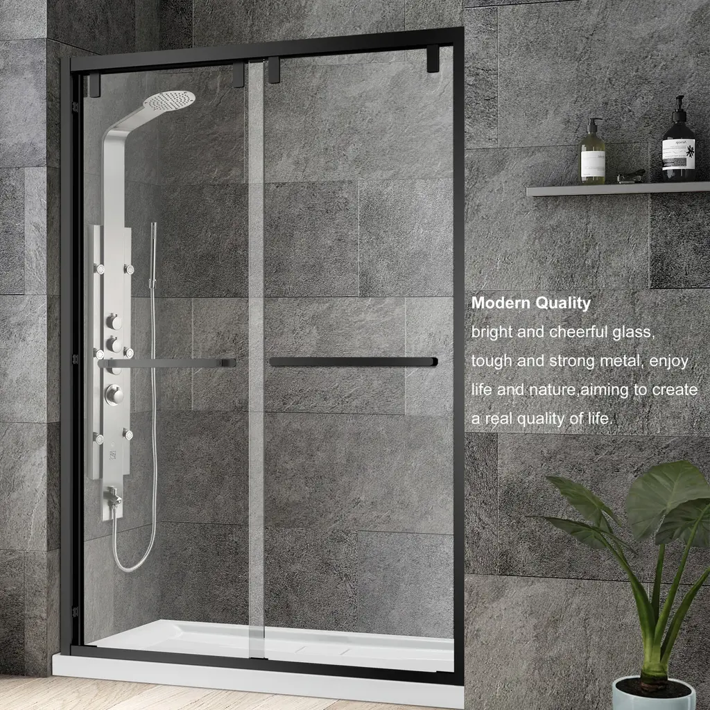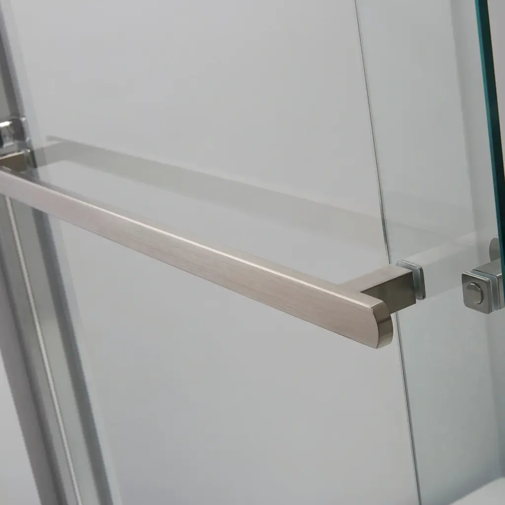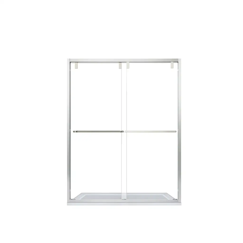 The Vinnova Brescia Shower Door Series blends superb looks with everyday functionality. Its sturdy glass panels keep water off the floor while creating a more spacious, open look in your bathroom. Whether you're doing a complete rehab or just want to modernize your space, this is a shower door that will deliver beauty and performance for years to come. Feature Bypass door provides space-saving efficiency and a seamless, modern look for your standalone shower. 8mm clear glass features an easy-clean coating for hassle-free maintenance and enduring clarity. Available in Polished Chrome, Brushed Nickel and Matte Black finish to complement any style of bathroom décor. Stainless steel towel bar doubles as a handle and offers a convenient place to hang your bath towels when showering. Sturdy, aluminum profile frame provides stability while resisting rust and corrosion. Stainless steel rollers ensure smooth-gliding performance as well as long-lasting reliability. Strong, tempered glass with SGCC/ANSI Z97.1-2015 certificate offers supreme safety and peace of mind. Tempered glass with ANSI Z97.1-2015 certificate * Easy assembly. Installation instructions, mounting bracket and hardware included.