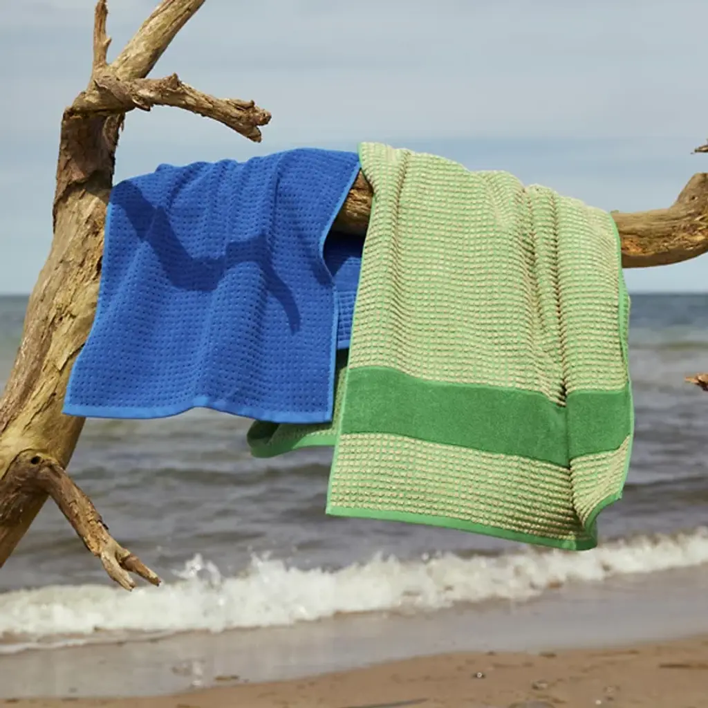 The Check Bath Towel, Set of 2 from Juna delights with a blend of physical artistry and conscience-soothing comfort. Woven from soft, lightweight organic cotton in Portugal, each towel features tactile zones and vibrant color contrasts, picking up water with ease. The safe OEKO-TEX labeling and GOTS certification denote the environmental and social care taken in its assembly.