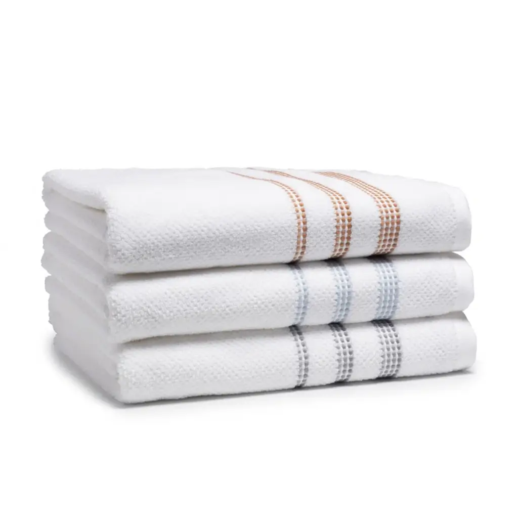 Function and style come together with this Textured Stripe towel. The towel is simple, yet brings modern appeal to your space with its textured alternating vertical stripe design. Available in three colors. Do not bleach