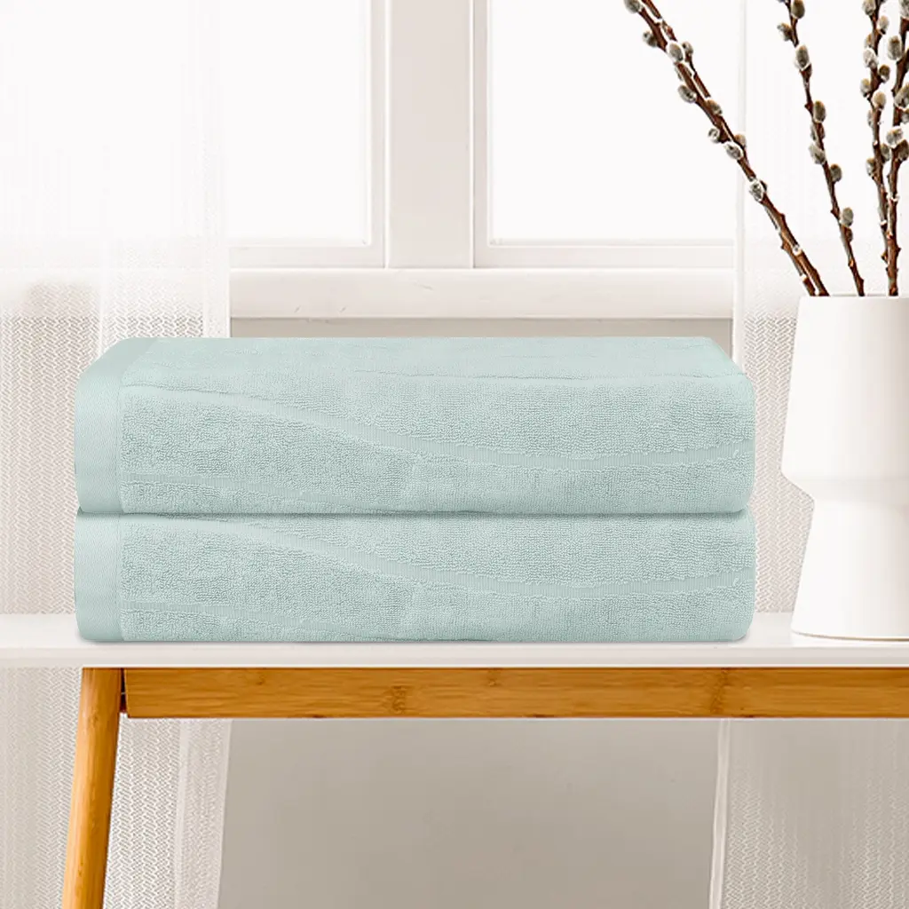 Cotton 2 Pcs Bath Towels, Light Weight And Highly Absorbent Towels For Bathroom, Gym, Spa, Yoga 28" X 56" - Blue