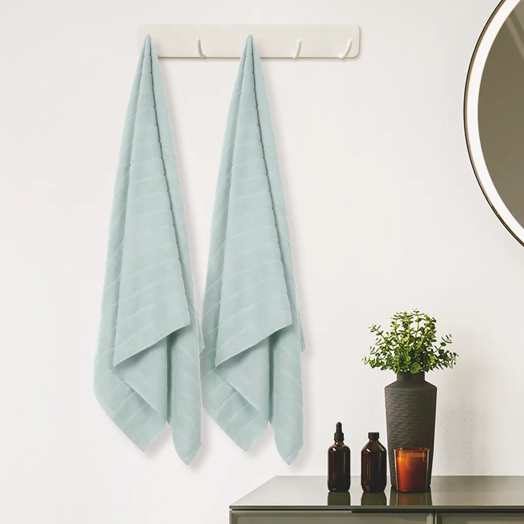 This two-piece cotton bath towel set is made of 100% pure cotton long-pile material with strong water absorption performance. The soft and delicate touch makes you feel comfortable after use without any roughness or irritation. After rigorous manufacturing and processing technology, the surface of the bath towel is not easy to shed and pilling, and it can maintain a good feel and appearance even after repeated washing.Specification:>Material: 100% cotton>Type: Bath Towels>Size: 70cm x 140cm/28" x 56">Colors:Blue/White/Pink/Green>Package includes: 2 PcsTips:1. Affected by various production, devices, and brightness, actual colors may differ from online colors.2. Please allow 2-3cm manual measurement differences.