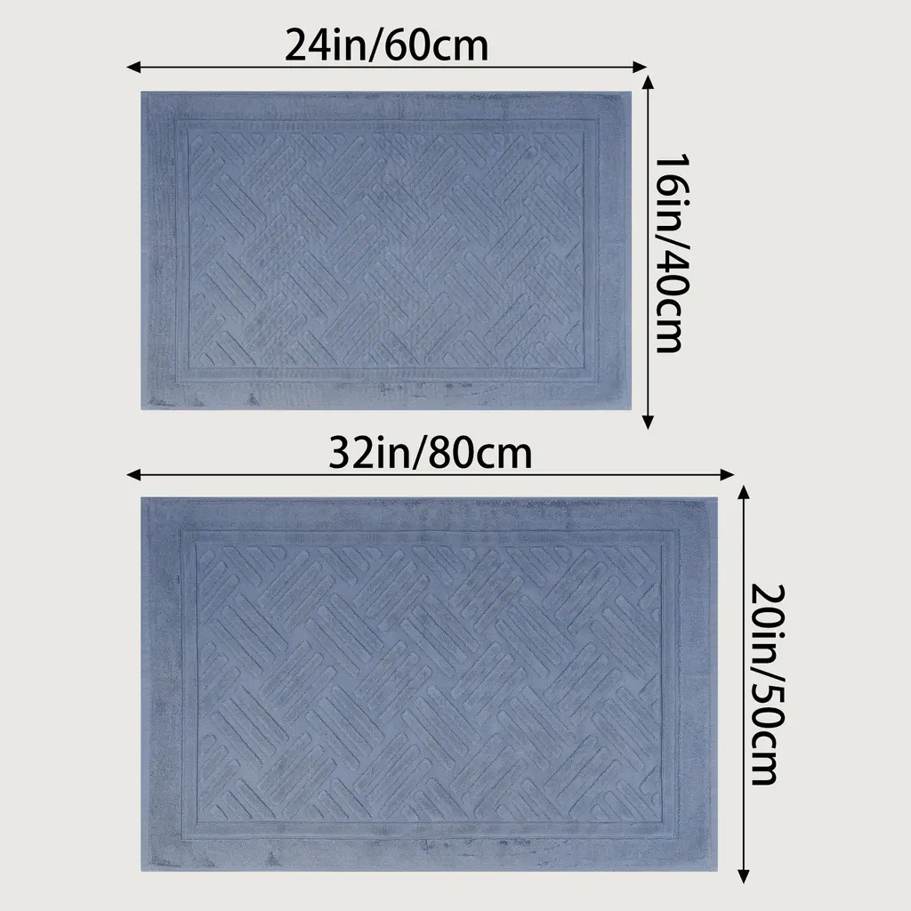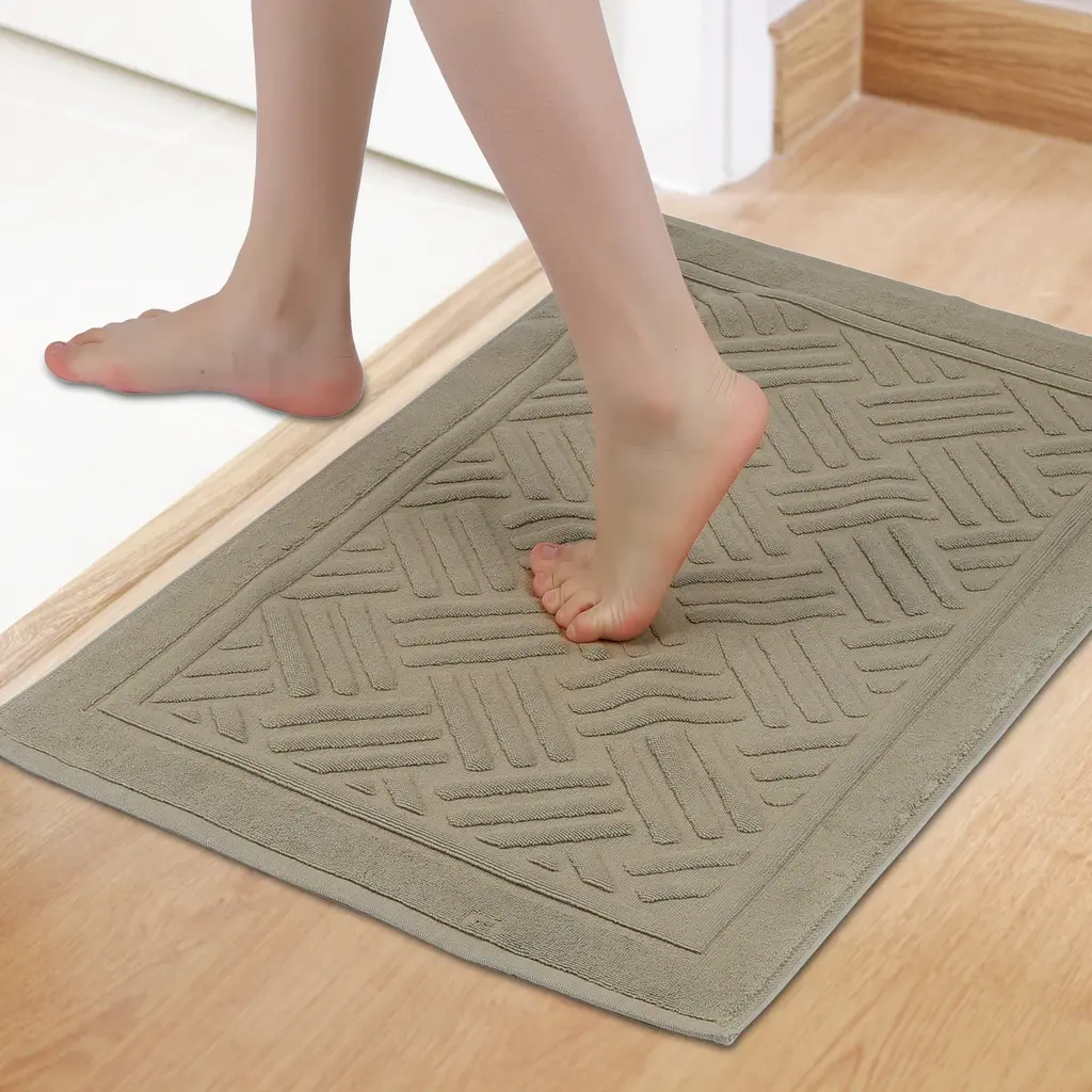 Indulge in Luxury: Pamper your feet with a plush bath mat after showering, at the start or end of your day, and enjoy a touch of opulence.Hotel & Spa Quality: Crafted from 100% cotton, these mats are durable, lightweight, washable, and exceptionally absorbent for a luxurious experience.Color & Size Selection: Opt for grey, beige, khaki, blue, and green terry cloth mats to seamlessly blend with your bathroom decor. Measuring 16 x 24 inches (40cm x 60cm) and 20 x 32 inches (50cm x 80cm), they are perfect for floor use and tub folding convenience.Ultimate Comfort & Versatility: Perfect for bathroom, sink, or tub placement, as well as an area rug around your home. An ideal gift for various occasions, such as housewarmings or holidays.Easy Upkeep & Quick Drying: With a non-rubber backing, these washable bath mats dry rapidly alongside other towels, ensuring simple maintenance and convenience.