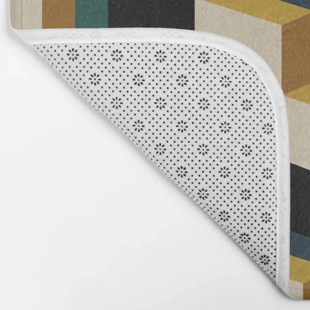 Cuboid Mid Century Abstract Shapes Pattern I Bath Mat