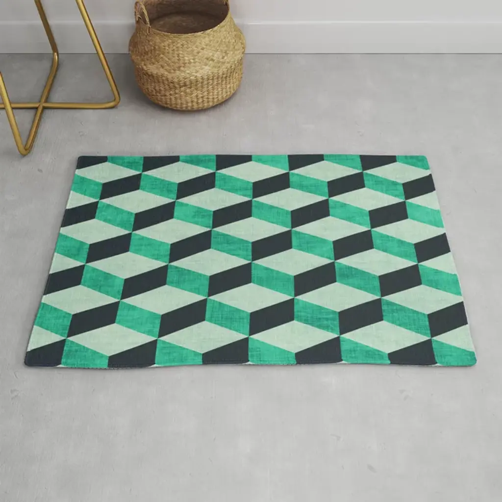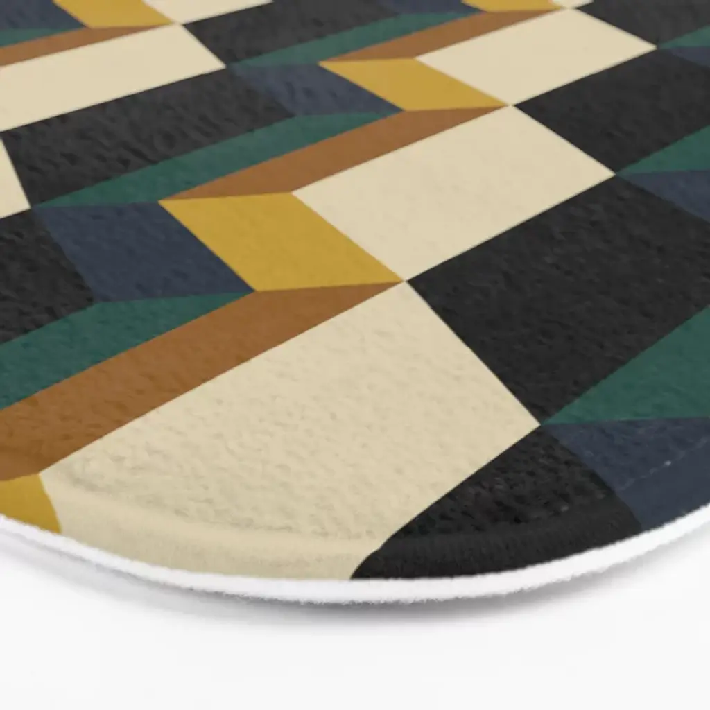Cuboid Mid Century Abstract Shapes Pattern I Bath Mat