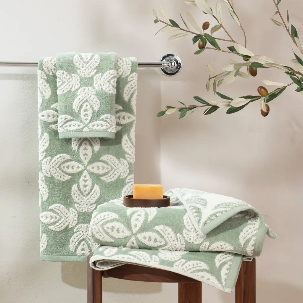 Turn your bathroom to a pure bliss with the John Robshaw Dasati Towel Collection. Inspired by John's travels, these plush 600-gram weight pieces are detailed in a reversible foliage pattern. Made from a fine cotton and linen blend, the collection is incredibly soft and super absorbent.