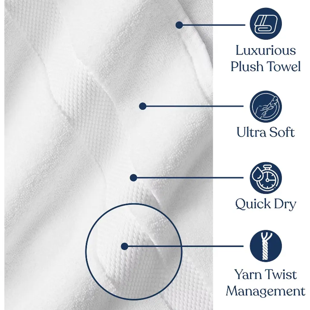 An advanced weaving process results in thousands of fine, untwisted loops that make our Feather Touch Quick Dry Towels up to 10 times more absorbent than traditional cotton terry. At fluffy 650 GSM, these organic cotton towels are super-soft and fast drying too. Pure Organic Cotton towel is lightweight, strong, quick dry and impervious to wear while staying delicate after several washes. Sumptuous white plush towels gives a luxurious feel to your restroom while helping you to improve your drying. The two-long-lasting fold sewed edges make this towel durable and long-lasting.