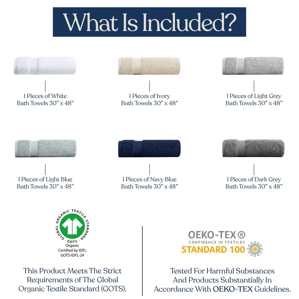 Delara Organic Cotton Luxuriously Bath Towel, Gots & Oeko-Tex Certified, Feather Touch Technology, 650 Gsm, Quick Dry 30"x58" - 6 Pack Multi-Color