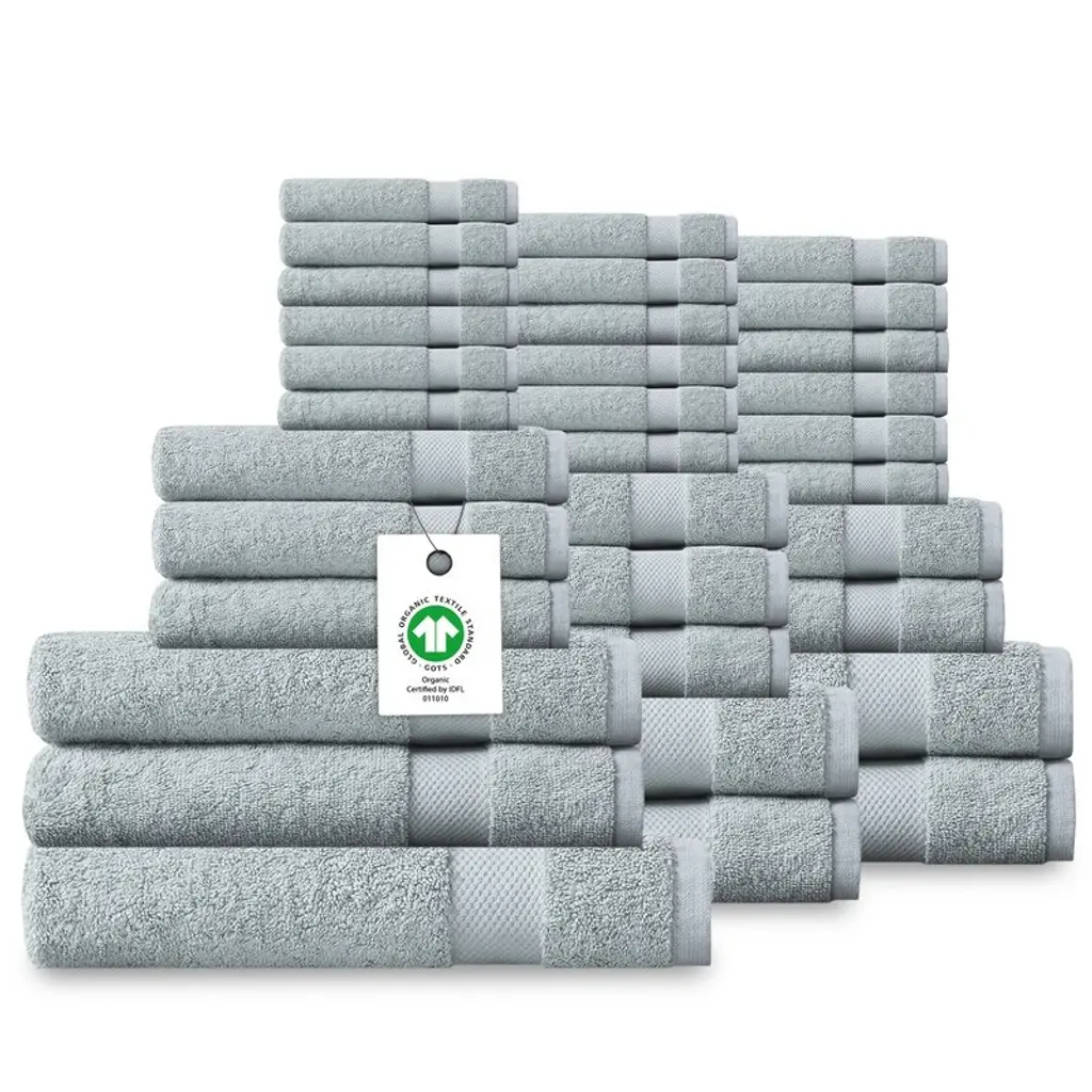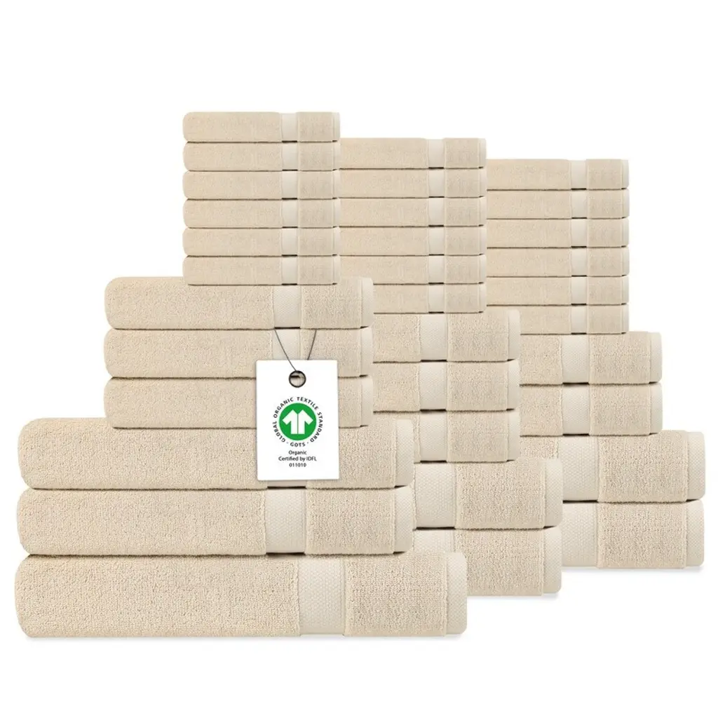 Delara Organic Cotton Luxuriously Plush Bath Towel 33 Piece Set |Gots & Oeko-Tex Certified |650 Gsm Long Staple|soft & Quick Dry - Ivory