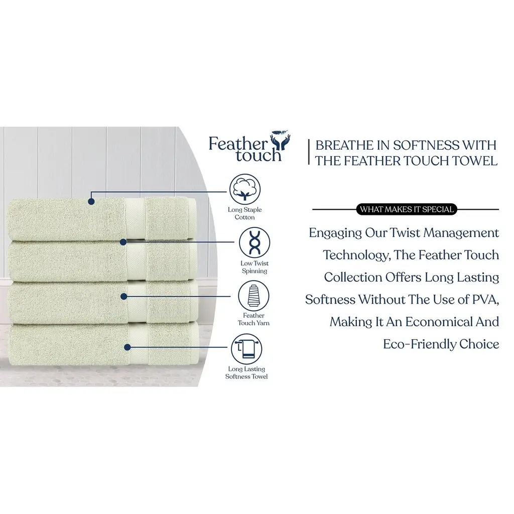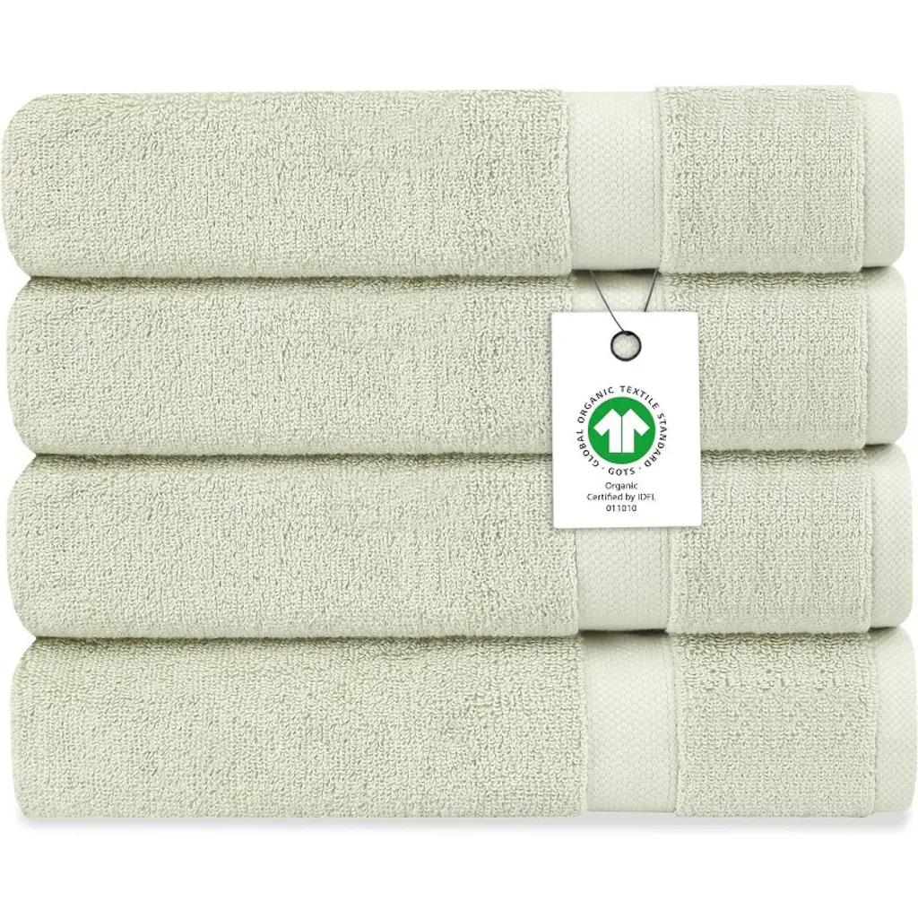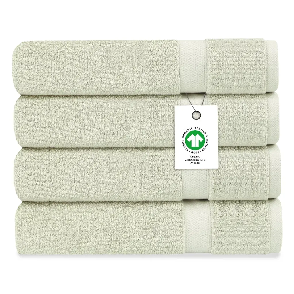 Delara Organic Cotton Luxuriously Plush Bath Towel Pack Of 4 |Gots & Oeko-Tex Certified |650 Gsm Long Staple - Green Tint
