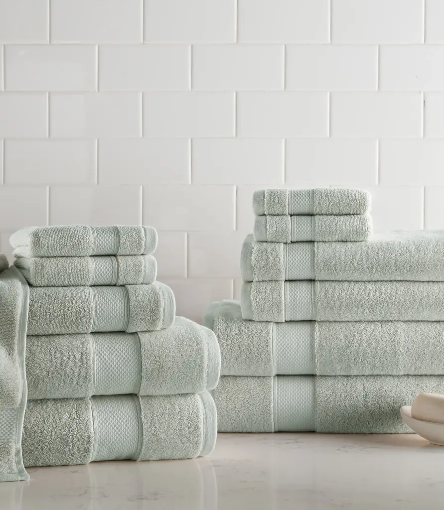 Absorbent, plush, quick drying and available in a 12-piece bundle, the Diamond towel set is the quickest way to make your bath feel five stars. Made of 100% extra-long staple cotton grown in the Aegean region of Turkey, this towel is a decadent 700 gram weight that is sure to impress.