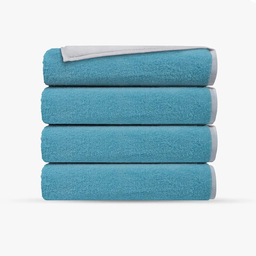 Double Face 4 Pcs Turkish Bath Towels Set - White Seaglass