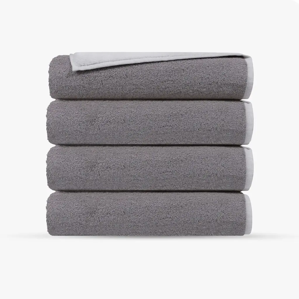 Double Face 4 Pcs Turkish Bath Towels Set - White Silver