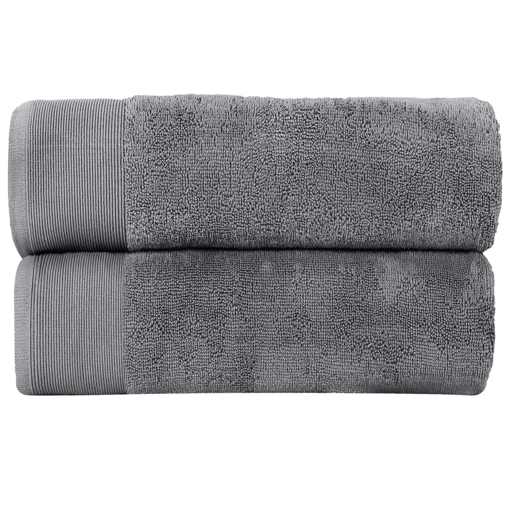 Fabstyles Camelot Bath Towel 600 Gsm Zero-Twist Cotton Set Of 2 - 27"x52" - Grey