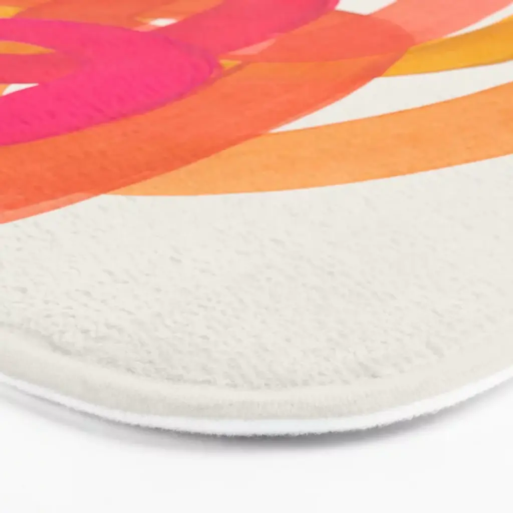 Funky Retro 70's Style Pattern Orange Pink Greindent Striped Circles Mid Century Colorful Pop Art Bath Mat