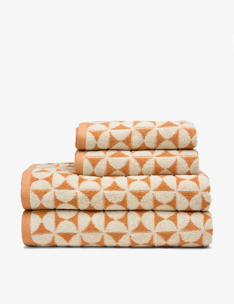 House No. 23's towels, bedding, and home linens are woven from the highest quality organic cotton and natural fibers for unparalleled softness. A half-moon design adorns both sides of this towel in a vibrant, alternating pattern. The organic cotton is fast-drying for a practical touch, while the two-sided design can brighten your bath or strike visual appeal poolside.