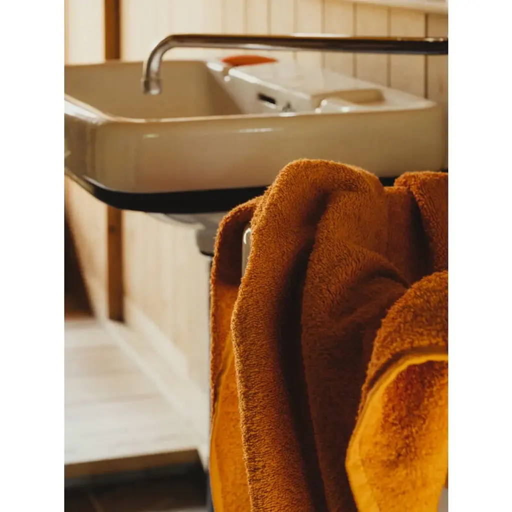 Frama’s Heavy Towel combines soft, Oeko-Tex-certified cotton terry with eco-friendly and durable hemp. Made of natural fibers, the luxuriously soft and thick bath towel is free from harmful chemicals and, what’s more, only gets better, softer and more absorbent the more you use it. The bath towel measures 55.12 x 27.56 x 0 in (140 x 70 x cm. cm). Heavy Towels have two loops that allow you to hang the towel in either direction. The towels come in a recyclable, reusable bag that can be used as a laundry bag when traveling or for carrying a wet towel after a day at the beach. The towels are made in Turkey.