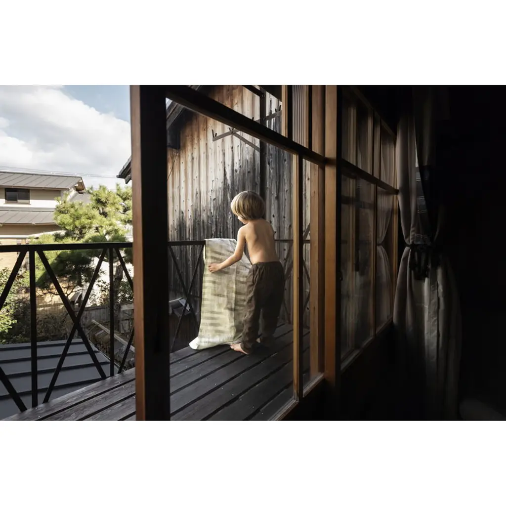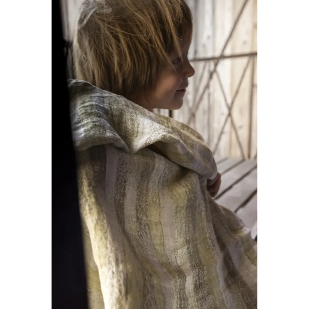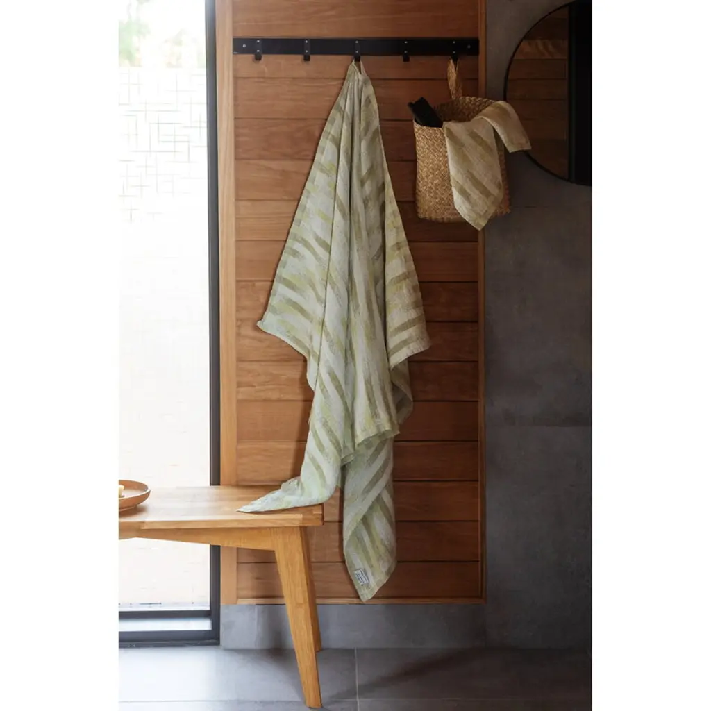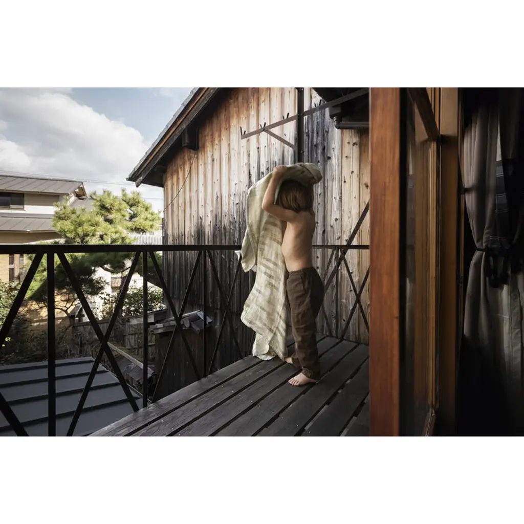 The Hohto bath towel by Lapuan Kankurit is the perfect match for a summer day. Wrap yourself in the towel after a swim or use it as a picnic blanket on the beach or in the park. The giant towel also brightens up the look of the bathroom with a beautiful Hohto pattern, designed by Elisa Defossez Kikuchi. The designer found inspiration for the pattern in the sun's beams shimmering through the leaves of trees – a phenomenon known in Japan as "komorebi". The Hohto towel is made in Finland of washed European linen, a carefree material with a naturally laid-back appearance. It is not necessary to iron the towel – small wrinkles and creases only give it a charming relaxed, natural look.
