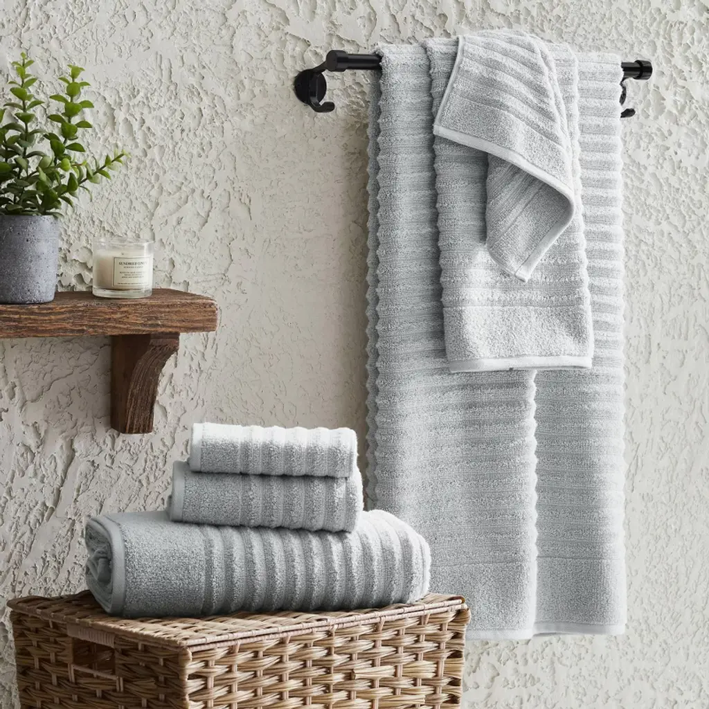 Isla Jade 6Pc Ribbed Mixed Bath Towels Set Soft Gray
